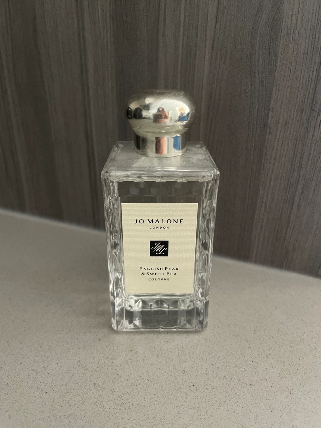 20Jo Malone London cologne. English Pear & Sweet Pea scent. Clear glass bottle, silver cap. Pre-owned.