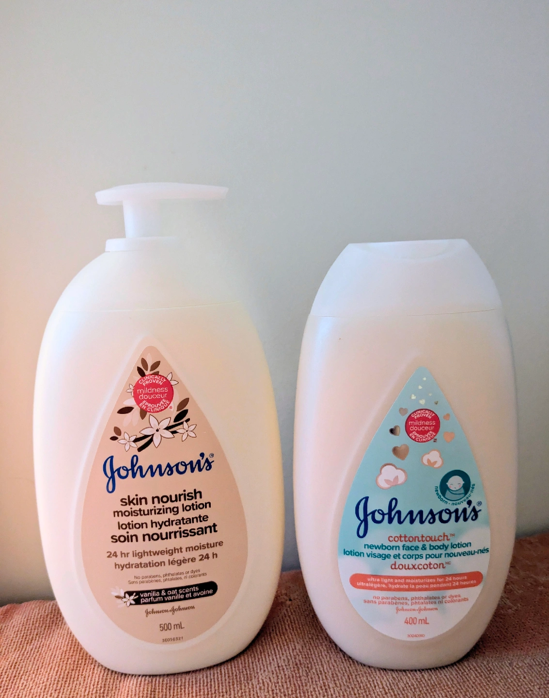 Two bottles of Johnson's lotion for sale. One is the Skin Nourish moisturizing lotion (500 mL) with vanilla & oat scents. The other is the Cottontouch newborn face & body lotion (400 mL). Both are designed to be light and moisturizing for 24 hours! Both for $5, Brand New. Pick Up Markham - can arrange for exact location.