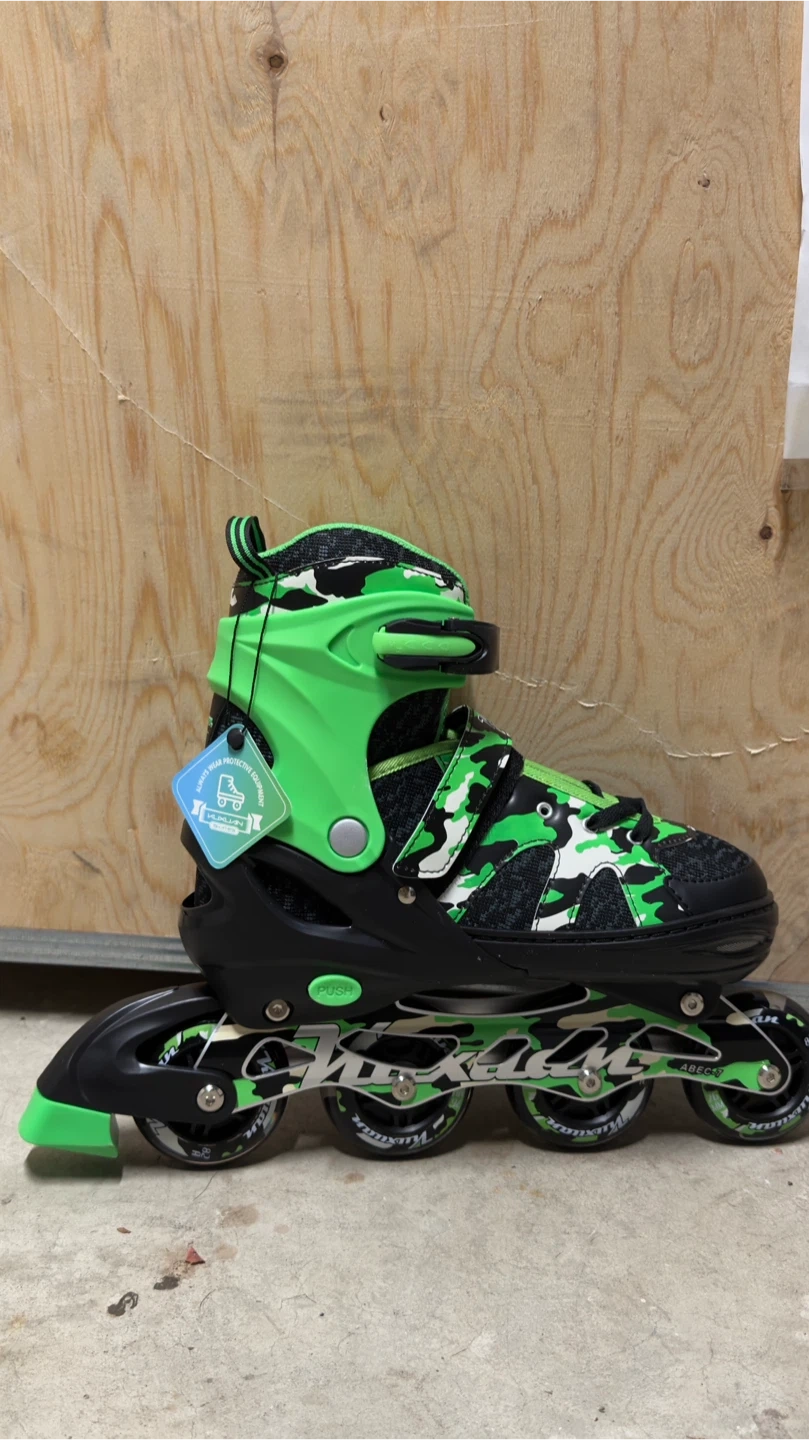 10These Kuxuan inline skates are new and never used, and ready for a new home! They are size XL (EU 40-43) and feature a cool black, green, and camo design. Perfect for hitting the streets or the rink!