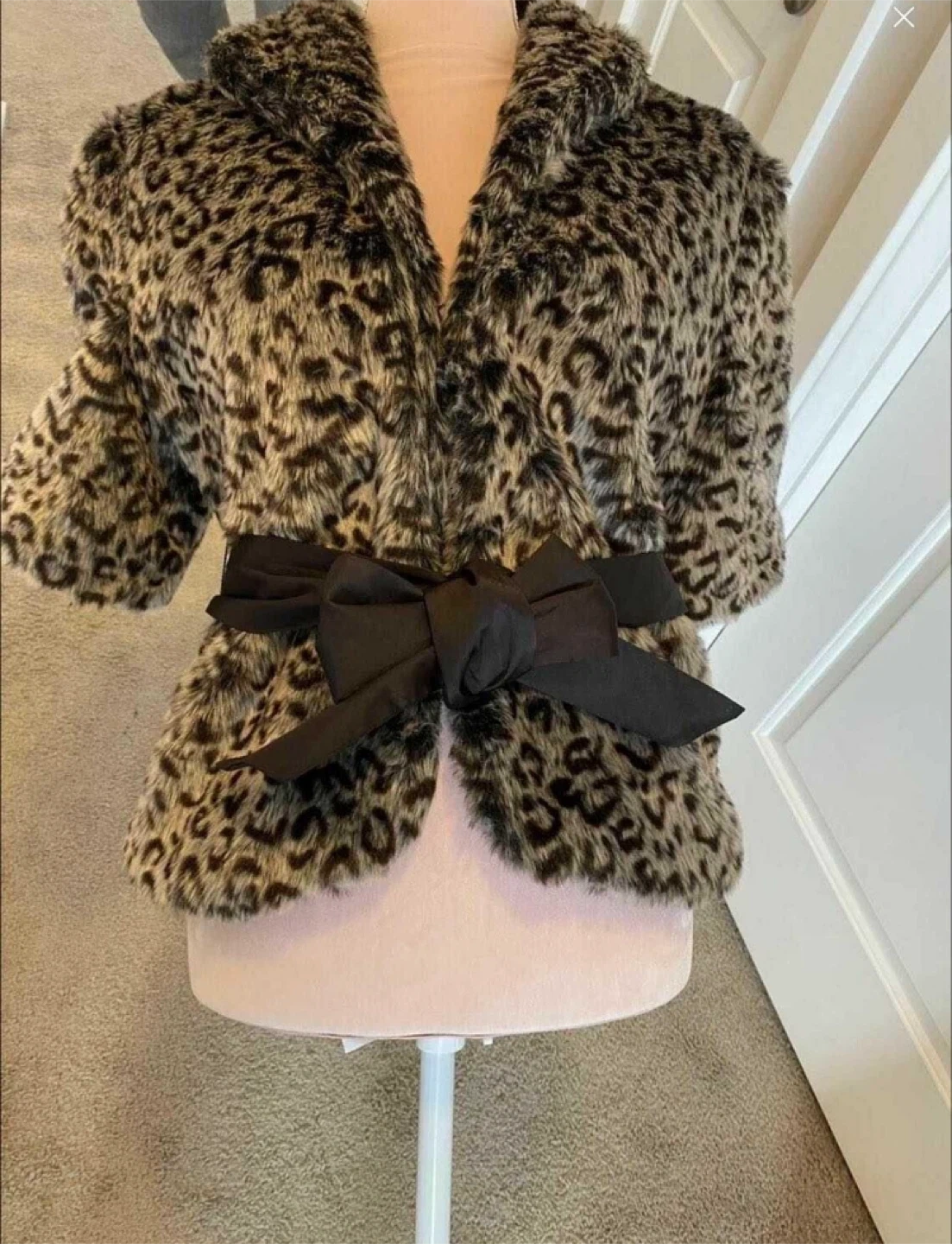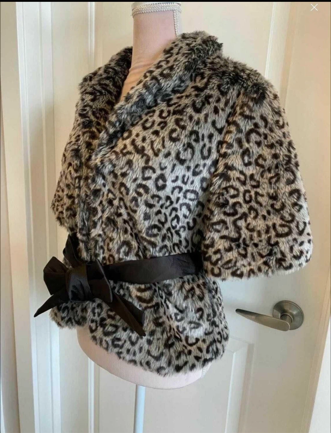10Selling a stylish leopard print coat in size L. This coat features a chic leopard print design and a flattering silhouette. It comes with a black ribbon belt to cinch the waist. Originally bought for $69.80