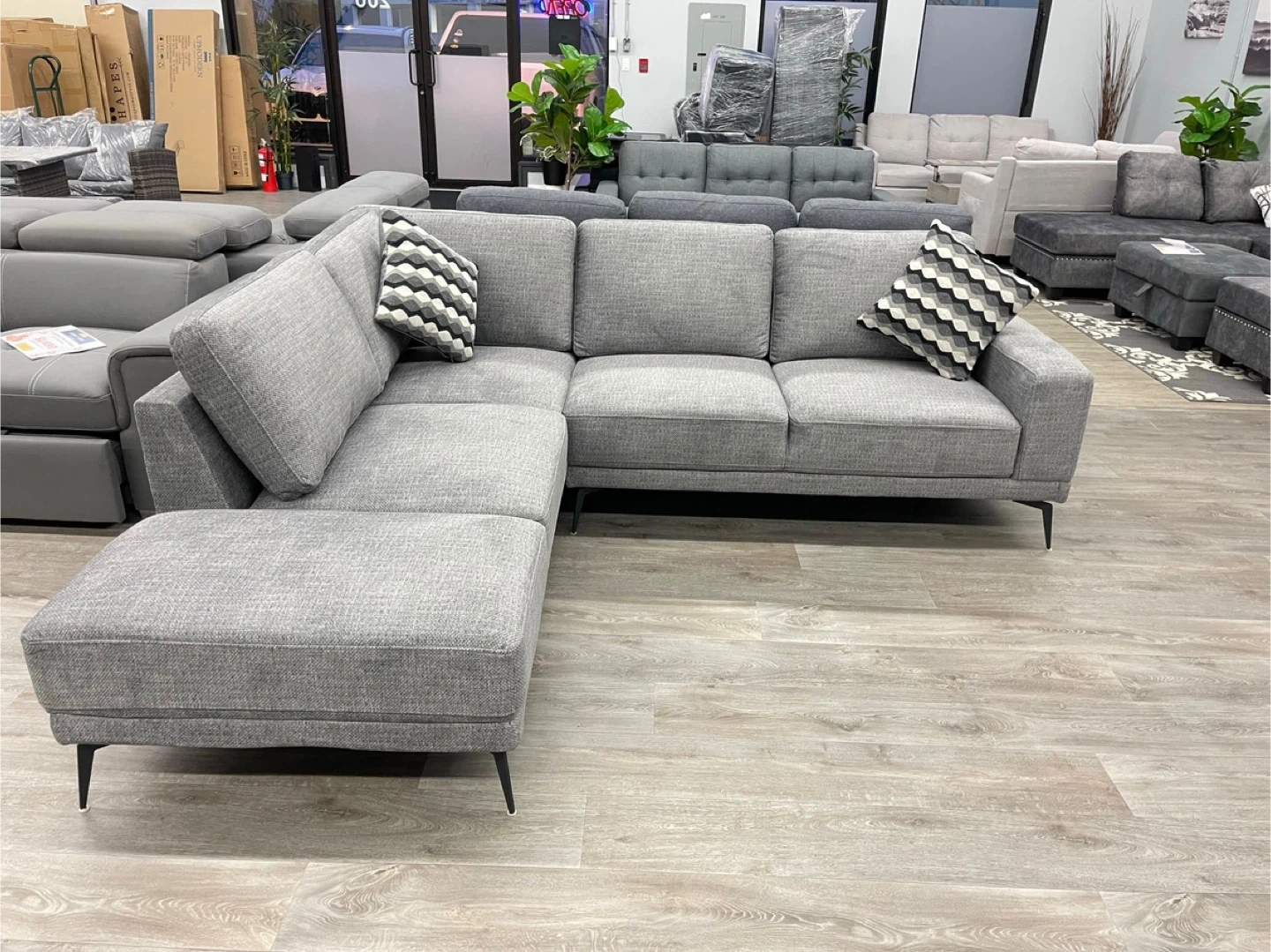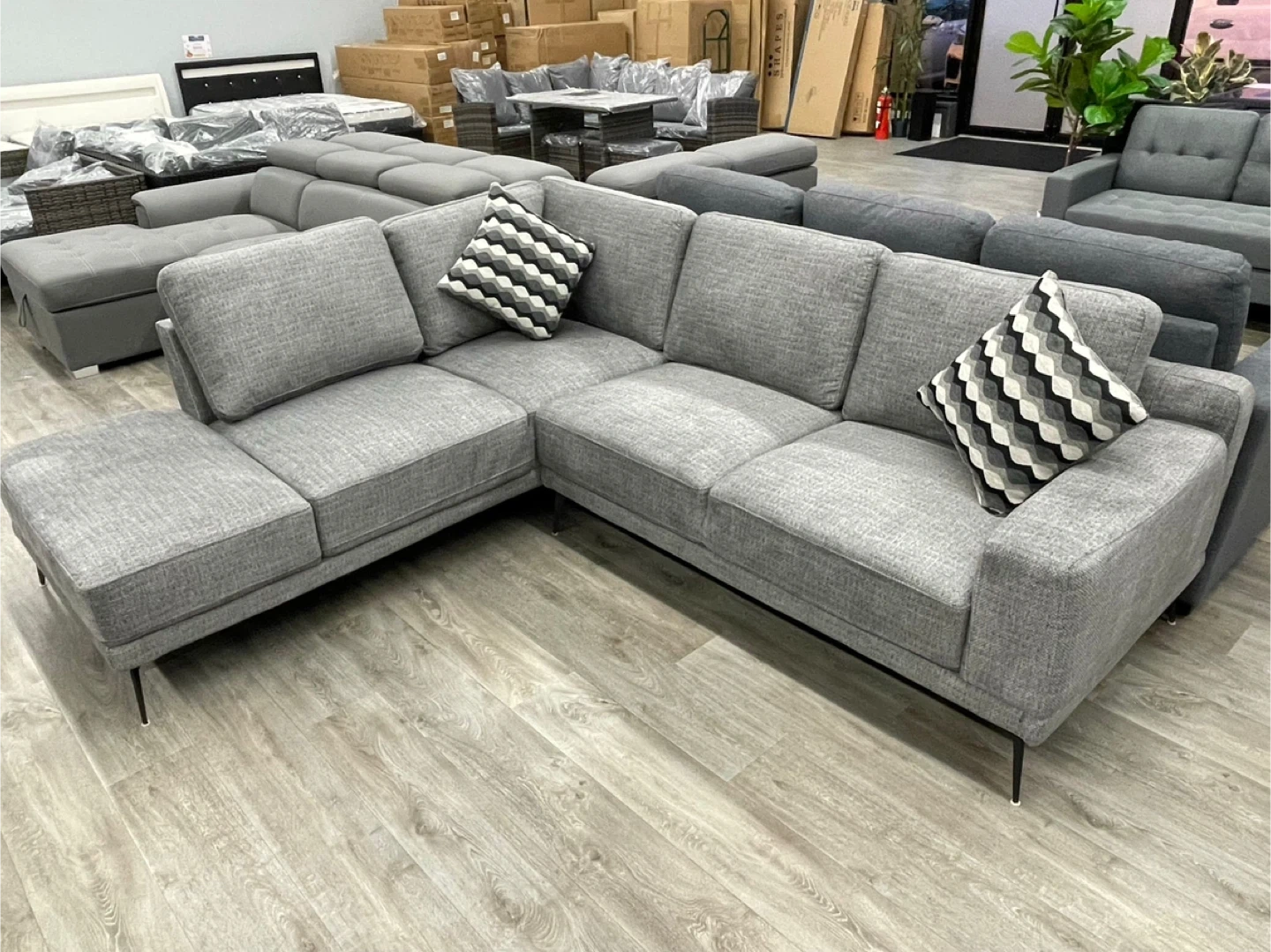 Brand New Light or Dark Grey Fabric Sectional Sofa