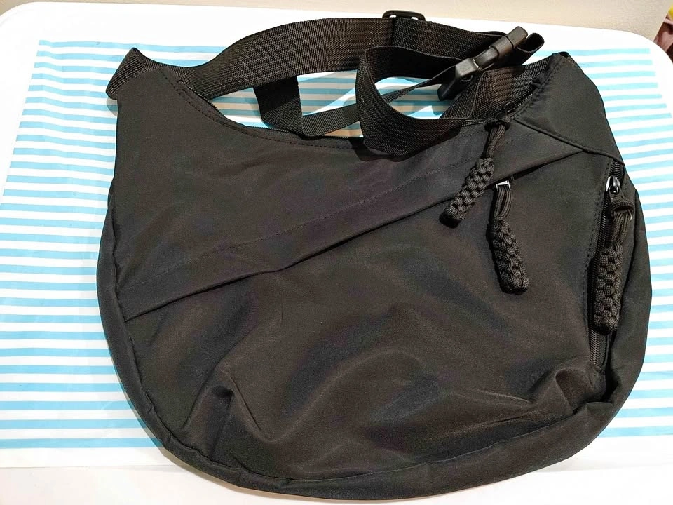 33- 3 compartments, 2 in front (but no pockets inside) - adjustable strap with buckle. - it's approximately 35cm/13.78inch in length, 28cm/11.02inch in height, and 5cm/1.97inch in width. - Good for everyday use Pick up at Killarney Community Center or nearby ~