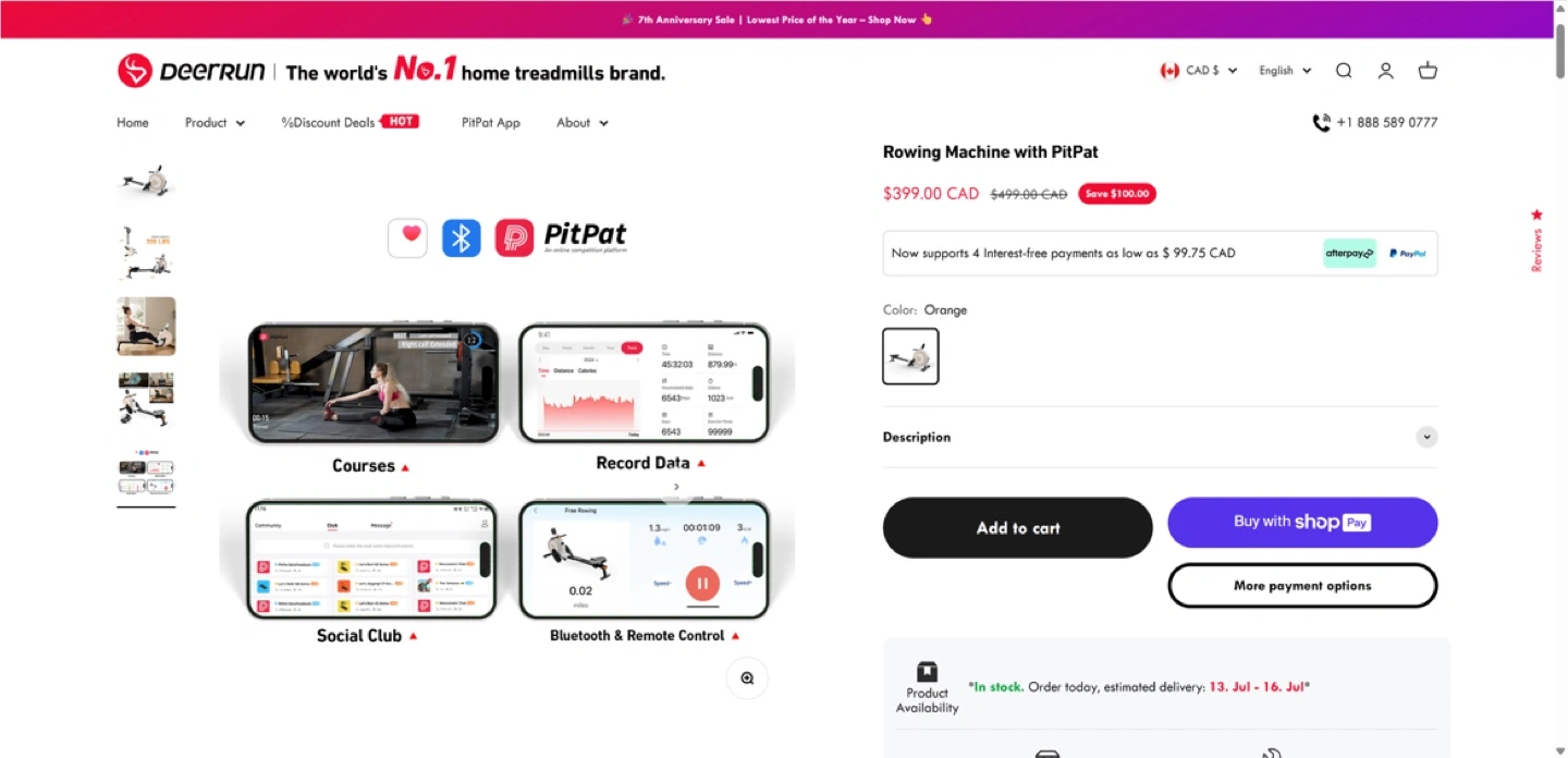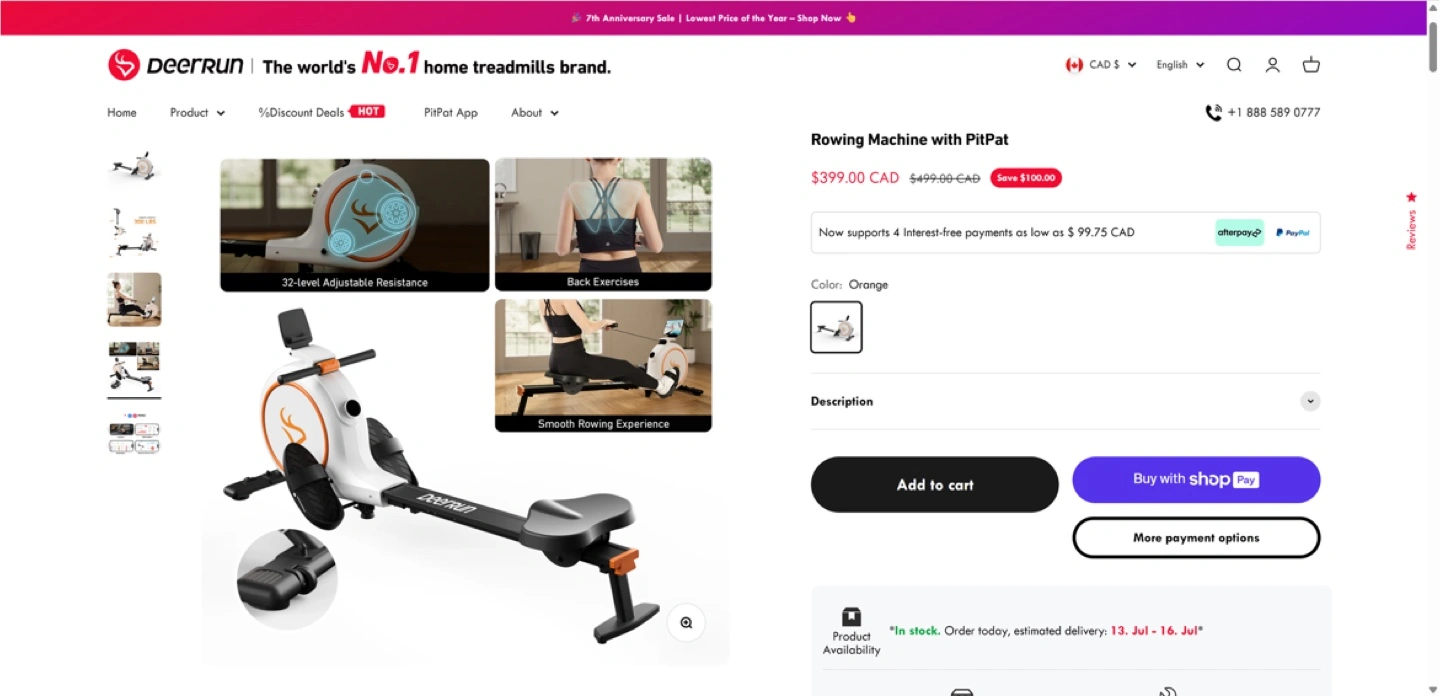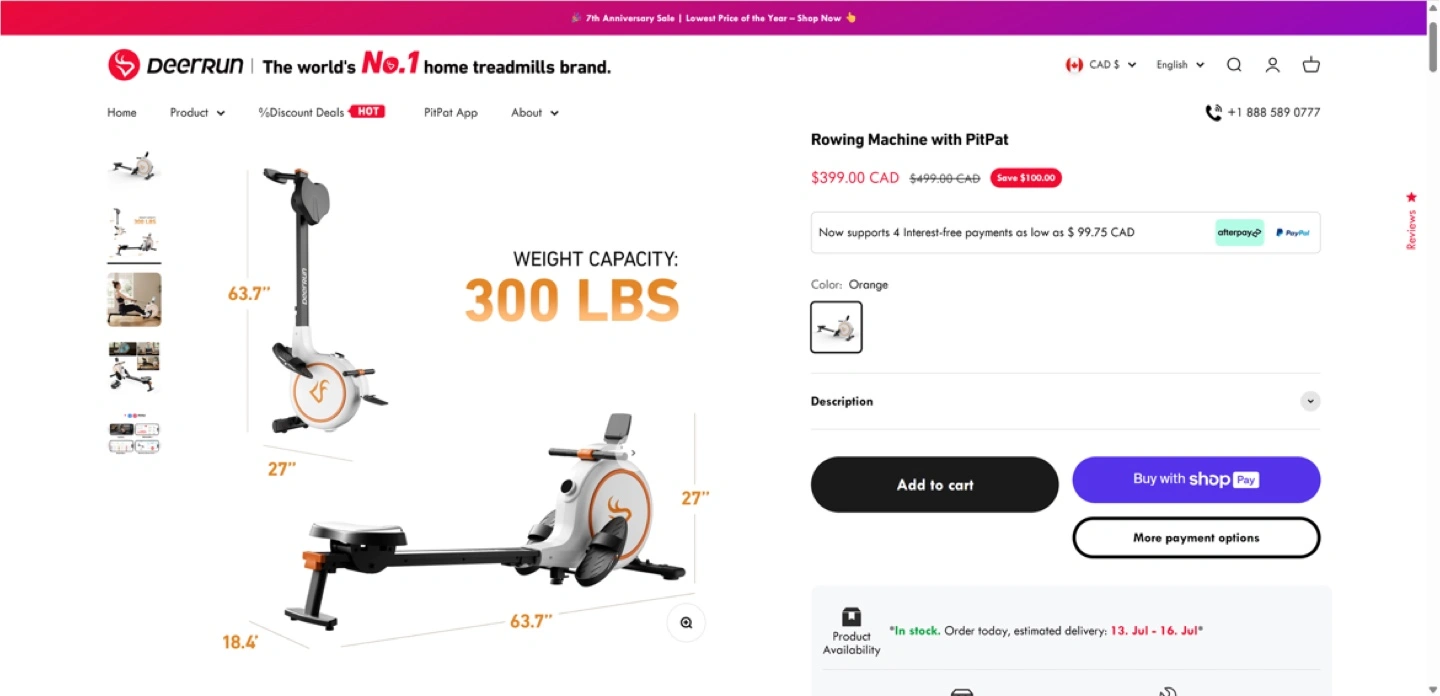 10Indoor rowing machine. Features 32 levels of magnetic resistance. Bluetooth connectivity and app support. Durable steel construction. Compact design, ideal for home use. Supports users up to 135 kg.