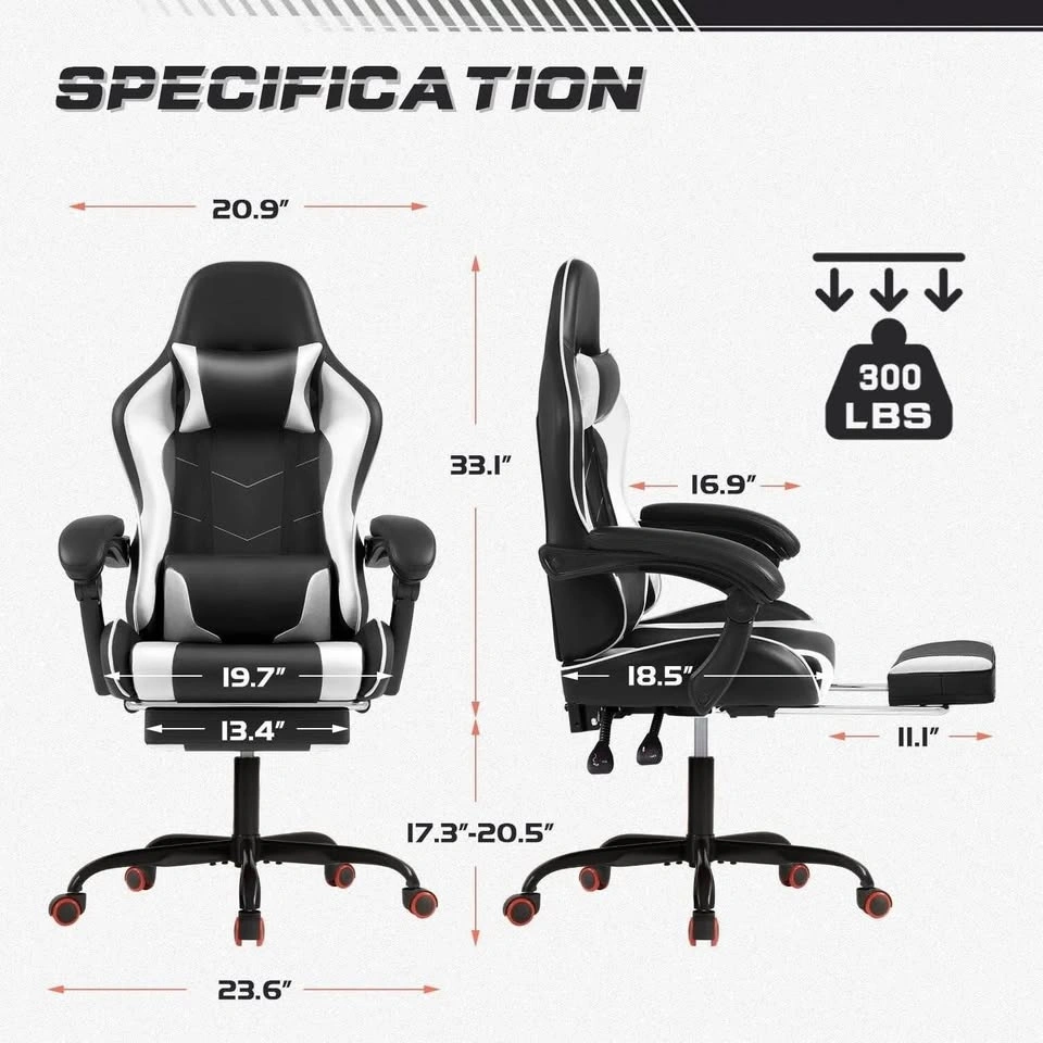 Brand new Furmax high back white PU leather massage gaming chair with footrest, model CR30710. Designed for long gaming or work sessions with thick sponge padding and smooth PU leather upholstery. Built-in vibration massage helps relieve lower back fatigue. Adjust the backrest from 90° to 165°. Extend the retractable footrest to stretch out. Features padded armrests, removable headrest, and height-adjustable seat (17.3”–20.5”). Supported by a heavy-duty steel frame and 5-star base with 360° swivel casters. Easy assembly with all tools and instructions included. Dimensions: 30.5”L × 24.5”W × 50.5”H. Seat Height Range: 17.3” – 20.5”. Recline Angle: 90° – 165°. Material: PU Leather, Steel Frame. Color: White. Weight Capacity: 300 lbs. Pickup at Hurontario & Sandalwood, Brampton. Perfect for gamers or professionals!