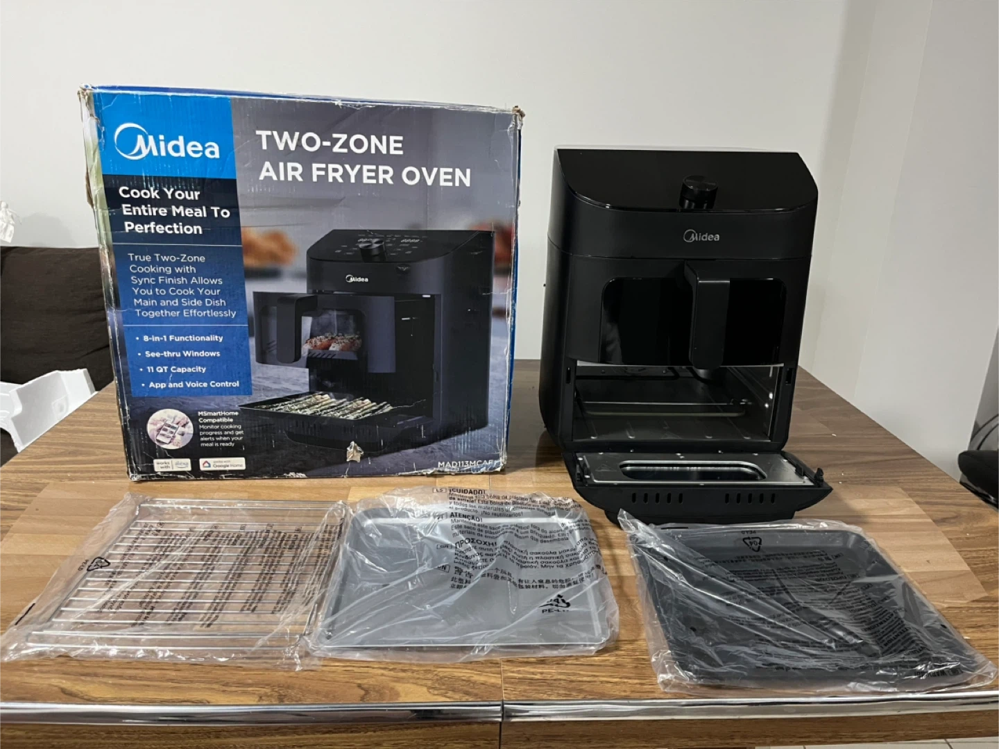 65Cook smarter and faster with the Midea Two-Zone Air Fryer Oven, featuring dual cooking zones that let you prepare your main dish and side at the same time β perfect for families, meal prep, or parties!