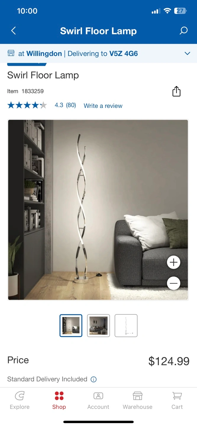 81Brand new, never opened. Modern LED floor lamp with a graceful twist design. One-year warranty included. Originally purchased from Costco as a gift. Paid $125 before tax and shipping. Asking $115 OBO. Thanks!