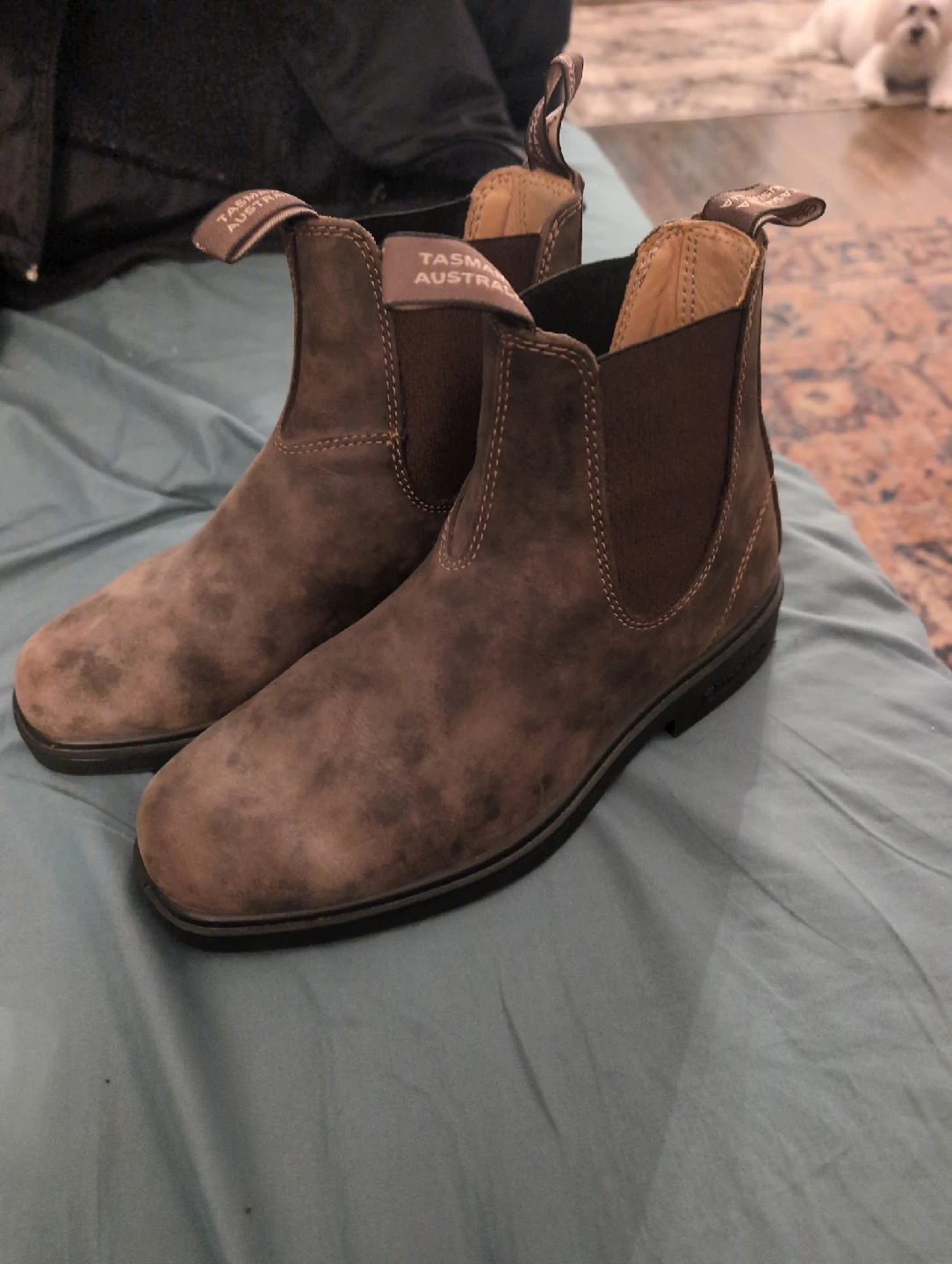 108Selling a pair of Blundstone ankle boots in a versatile brown colour! They're in great condition and ready for a new home. The size is a US 10. NEVER WORN.