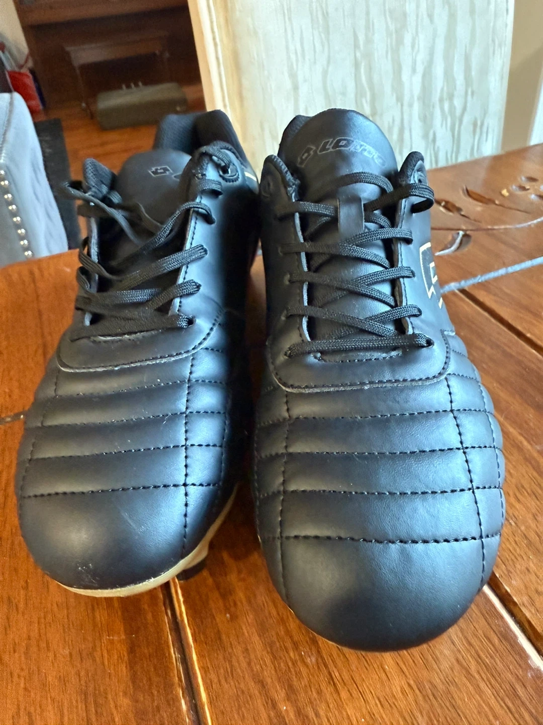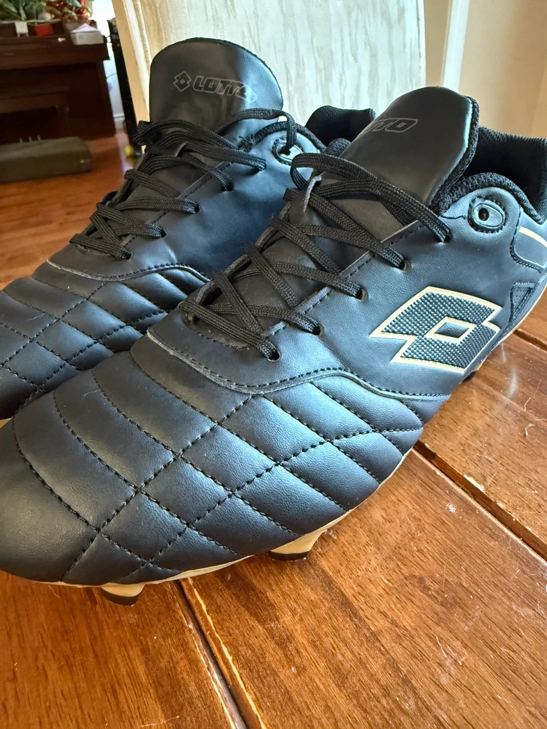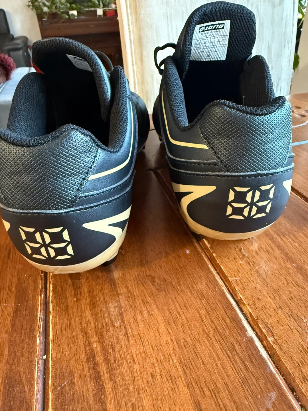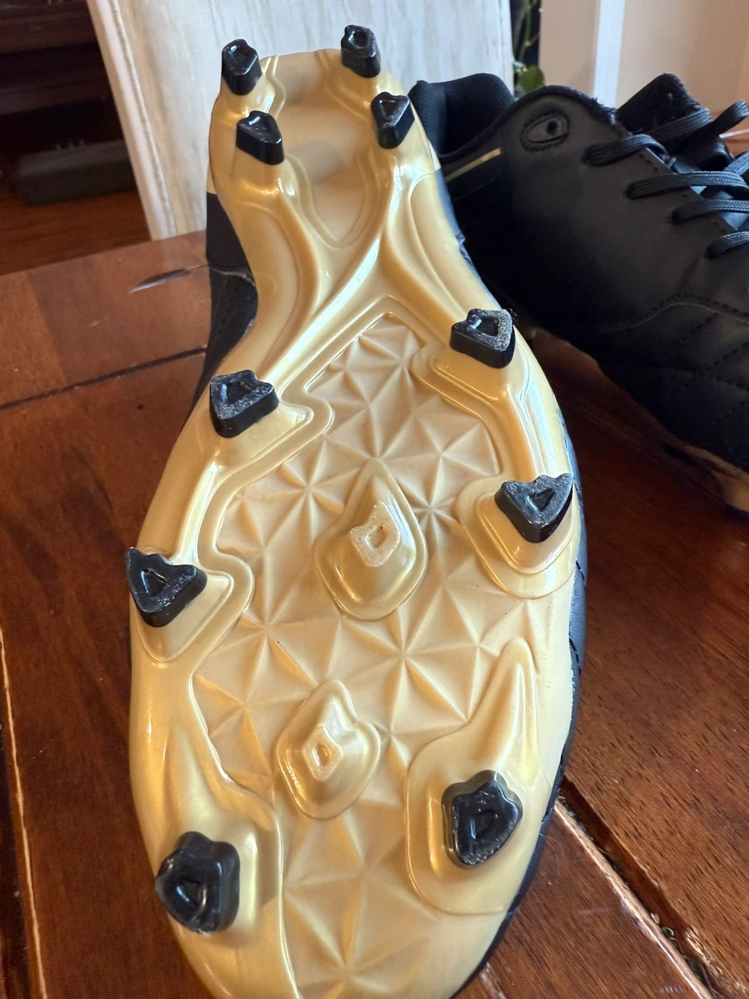 65Open box sports shoe size 8 1/2 black and gold in colour