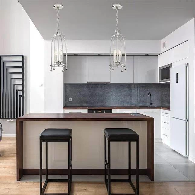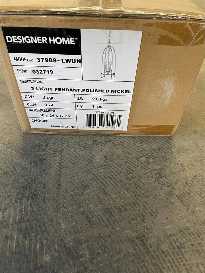 94Brand new polished nickel pendant lights (CF27185) in factory packaging. Features a cluster of bulbs enclosed in an open caged dome, blending classic candelabra charm with modern geometric design. The polished nickel surface adds a touch of sophistication. Includes mounting hardware and adjustable hanging chain. Compatible with dimmable switches (bulbs not included). Style: Transitional / Geometric Cage Design Finish / Color: Polished Nickel Material: Metal Number of Lights: 2 Bulb Type: B10 / Max 60W each (bulbs not included) Fixture Height: 20 inches Fixture Width: 9 inches Chain / Downrod Length: 60 inches (adjustable) Wire Length: 72 inches Hanging Height: 20” (min) – 80” (max) Mounting Type: Hardwired Pendant Dimmable: Yes Weight: 7.5 lbs Pickup available at Hurontario & Sandalwood, Brampton. A modern twist on timeless elegance — perfect for kitchens, dining rooms, or entryways!