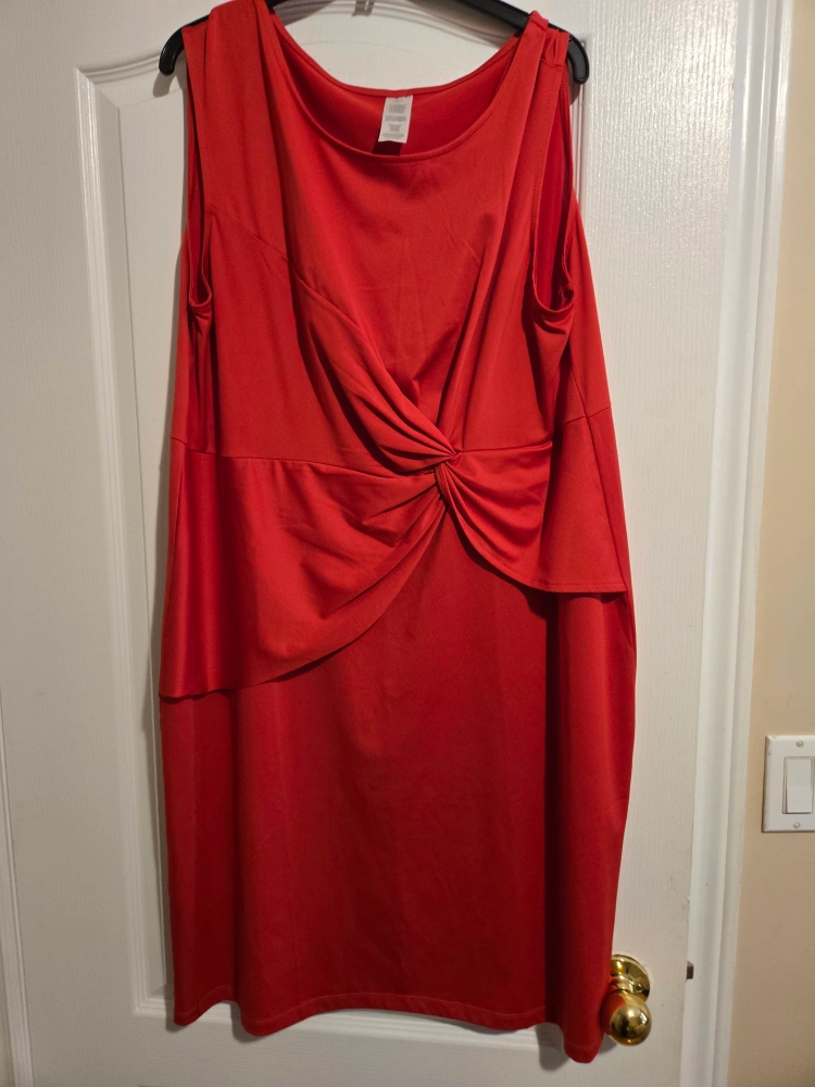 Selling a vibrant red dress in size 1X. It's made of a comfortable blend of 95% polyester and 5% spandex, perfect for a flattering fit and easy care! This dress is in great condition and ready for a new home