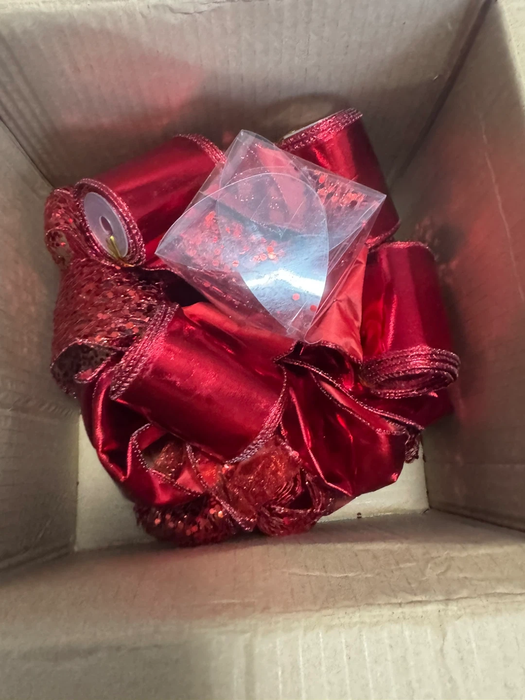 1000+Brand New Red Ribbon Tree Topper, with cascading ribbon that hangs in spirals down the tree. I ordered this online from Etsy, but I never ended up using it and I am going to sell it this year. $15 Pick up in the lobby of my condo located in Scarborough at Finch and McCowan