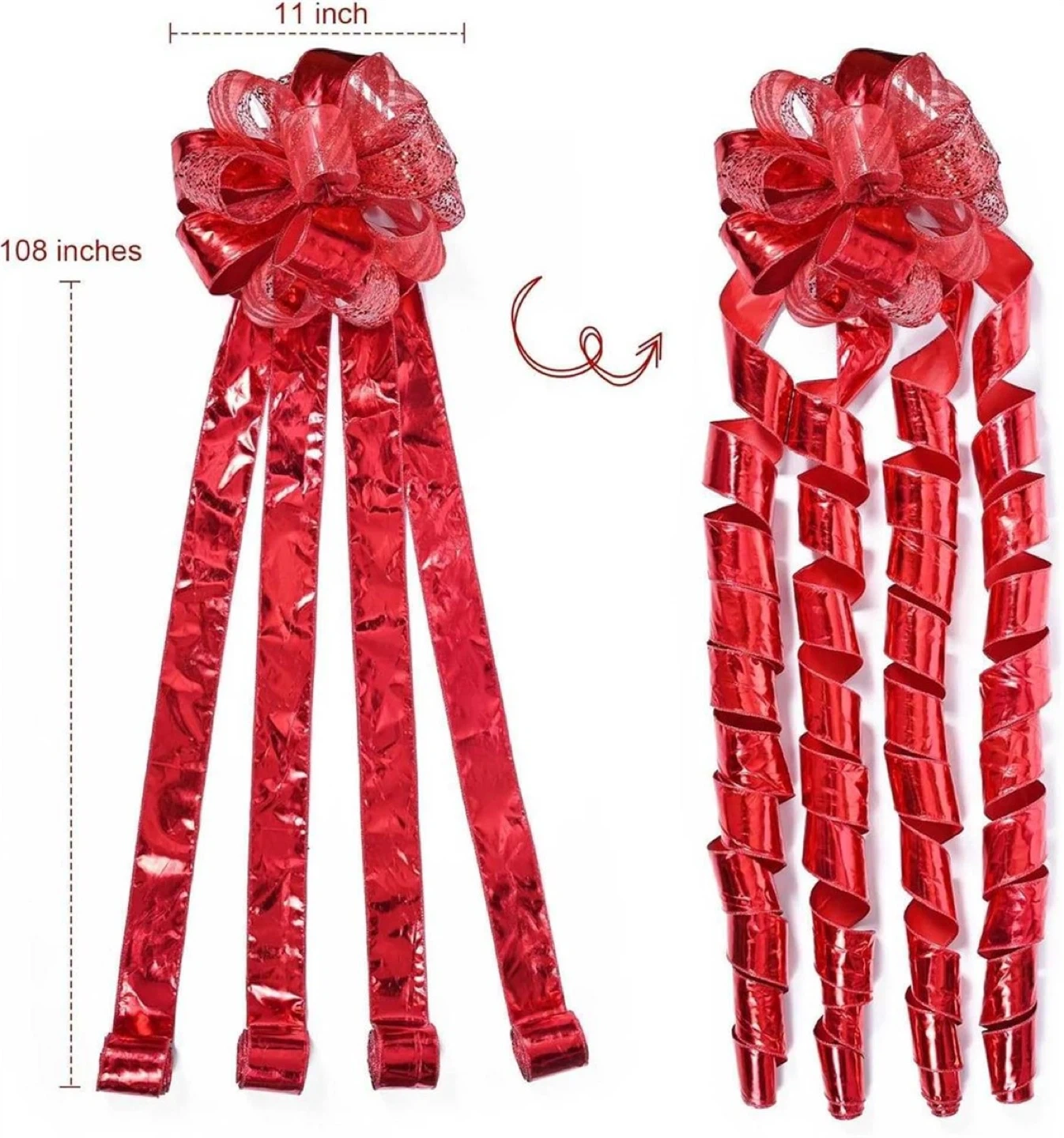 Brand New Red Ribbon Tree Topper, with cascading ribbons