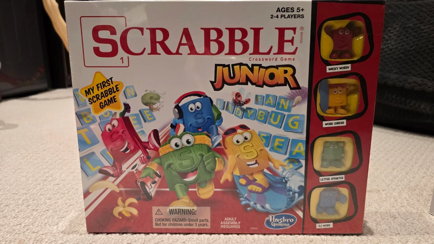 13Brand New, Factory wrapped Scrabble Junior Crossword Game for ages 5+. It includes: - Gameboard - 100 Letter Tiles - 4 Tile Racks - Rules