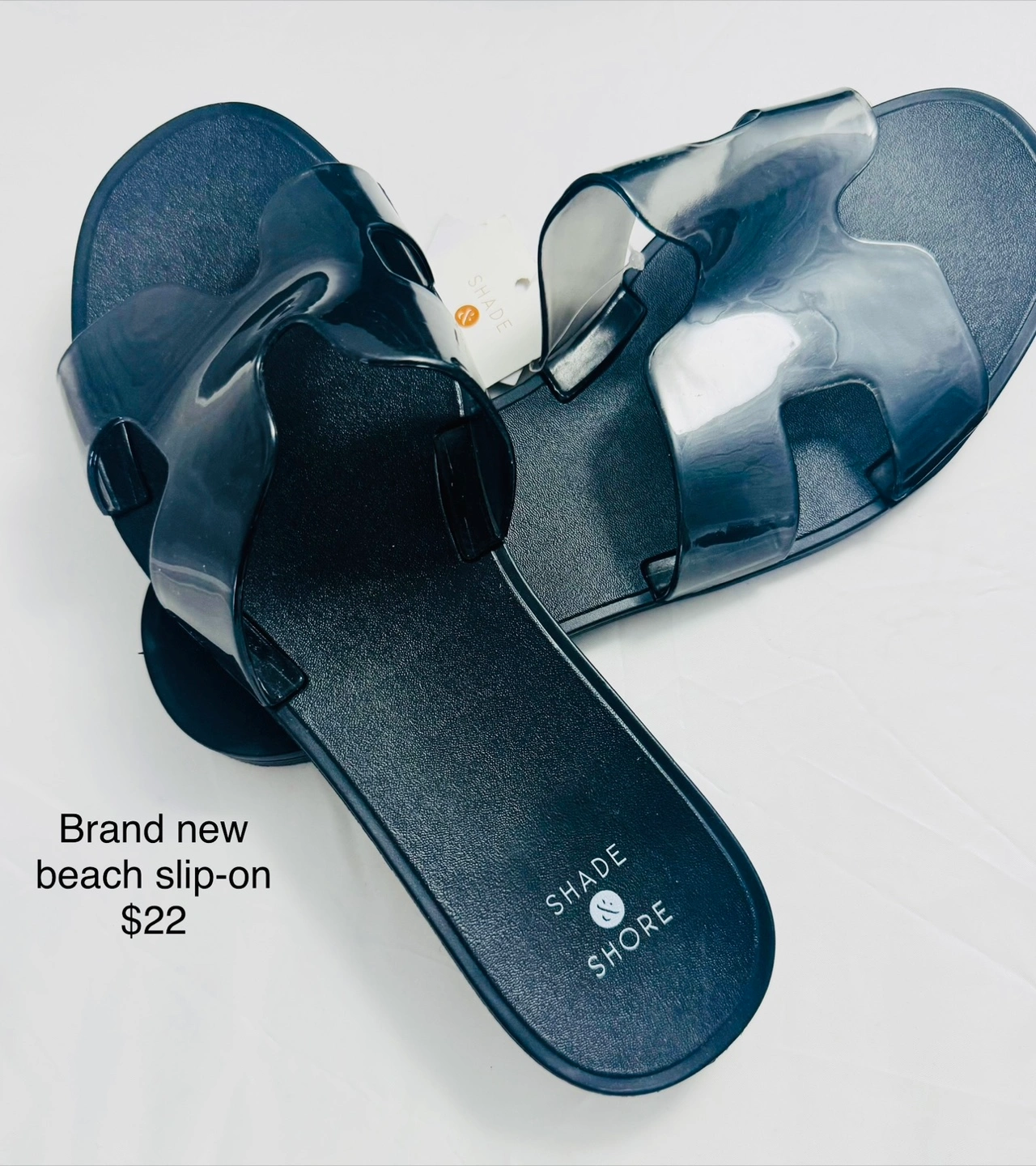 31Brand new women's sandals. Black jelly material. Slip-on style. Perfect for the beach or summer.