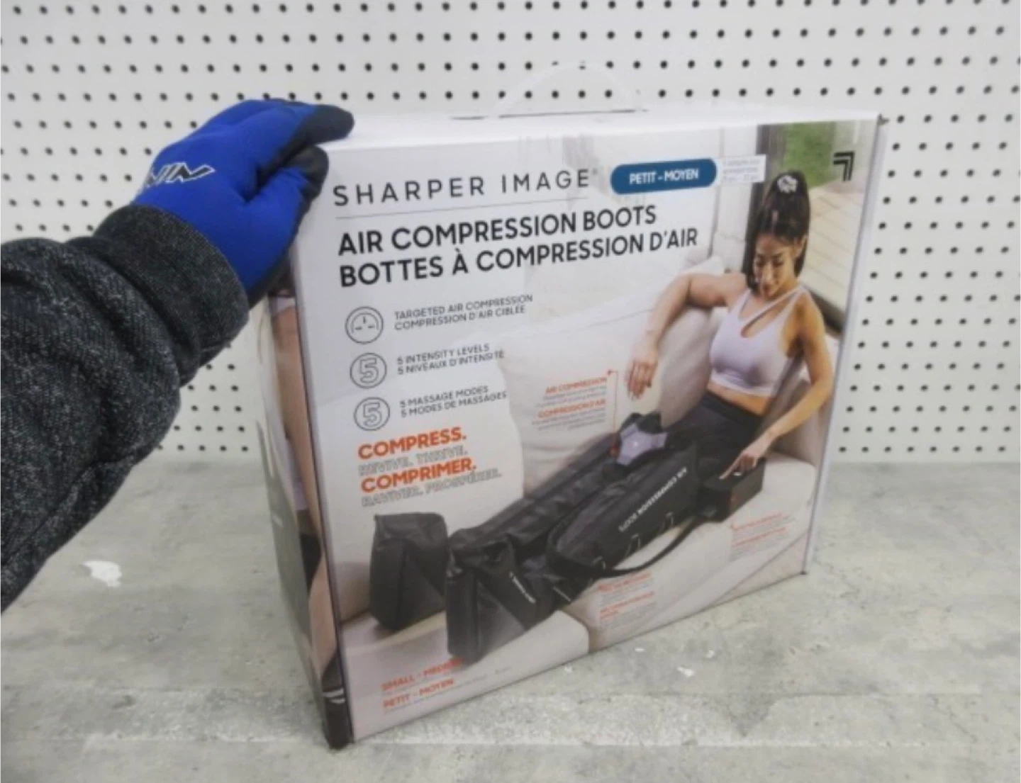 57Brand new Sharper Image brand Air compression boots that massage legs so perfectly. My husband and I have one of these. And we purchased one for our uncle for his upcoming birthday (he tried it at our place and loved it). However, he was recently diagnosed with a leg vein condition and was told not to use such devices. It is brand new. Still in original plastic packaging inside the box itself. Can easily be gifted. Purchased for $250 plus tax. Asking for $180.