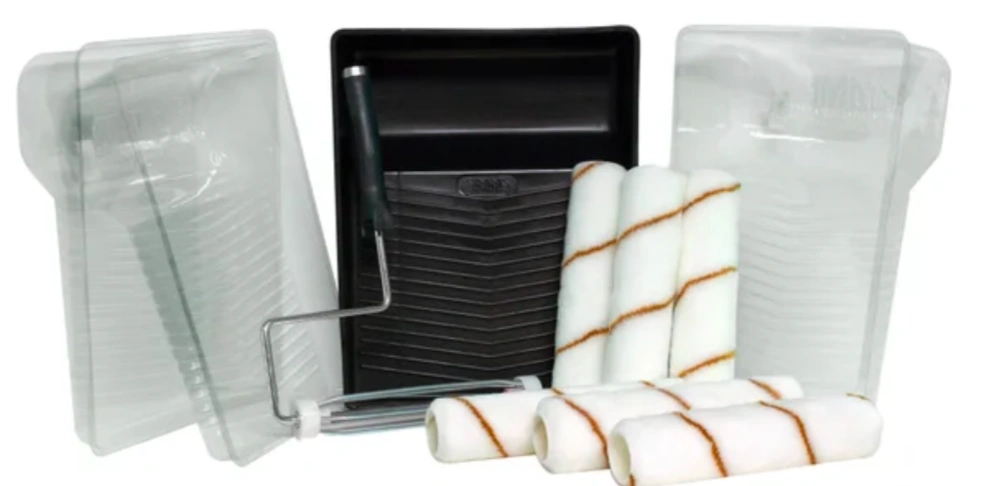 49Professional lint-free paint roller kit. Set contains 6 10 mm (3/8 in.) pile rollers, 1 plastic paint tray, 3 tray liners and 1 roller cage frame. Quality paint tools for exceptional results. For use on smooth and semi-smooth surfaces. For interior and exterior use. Features: High-density woven lint-free rollers for smooth finishes Sturdy capacity solvent-resistant plastic paint tray with anti-skid grid that controls amount of paint on roller for even painting results 3 paint tray liners for quick colour changes to save on clean-up time Heavy-duty roller cage frame has threaded handle for use with extension pole For use in all paints Paint rollers: 240 mm (9.5 in.) Paint trays: 2 L capacity Specifications: Item dimensions: 38.6 cm × 10.95 cm × 30.33 cm (15.44 in. × 4.3 in. × 12.13 in.) Brand New Original Packaging Pick Up Markham - can arrange for exact location.