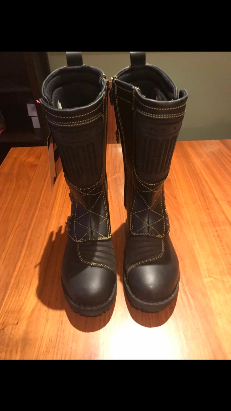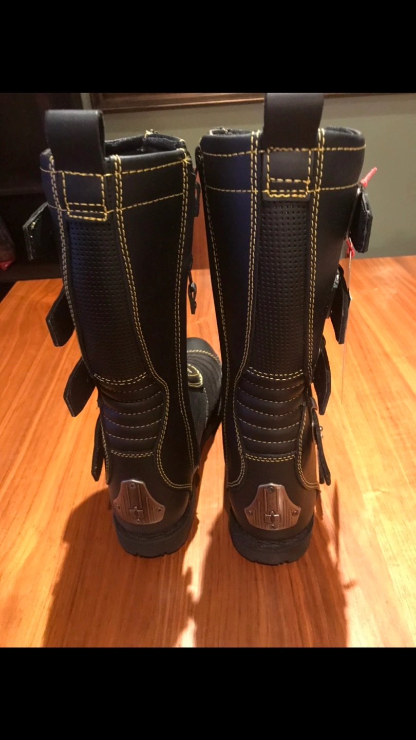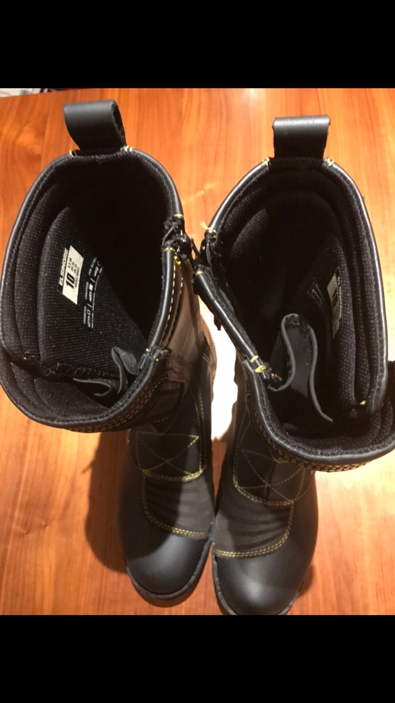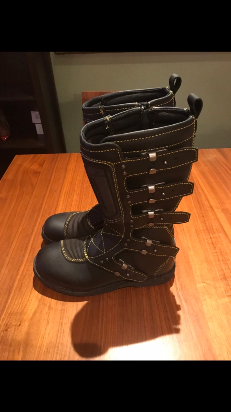 (Brand New) snowboard & motorcycle boots, size 10. Jet Black. *(snowboard is not included) Stand out from the crowd on your favourite ski slopes with this beautiful genuine treated real leather boots. Comfort and stylish design will have you proud and satisfied on your snowboarding & motorcycling. *New one sells in store for minimum $300+tax.
