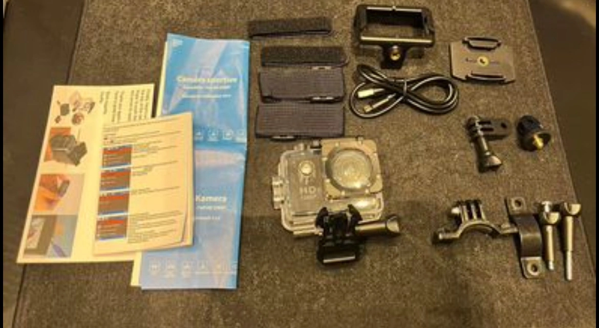 Brand new HD sports camera with manual, helmet stand, bike stand and wrist bands .