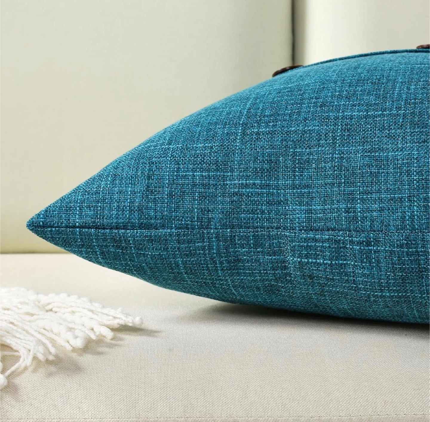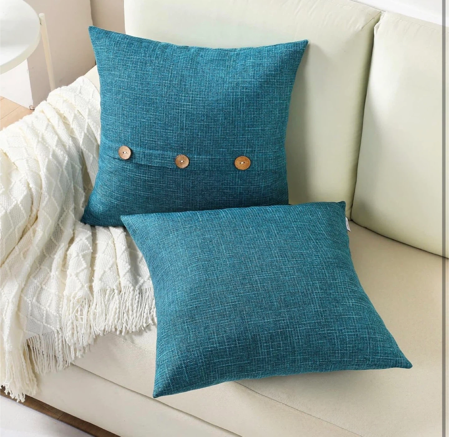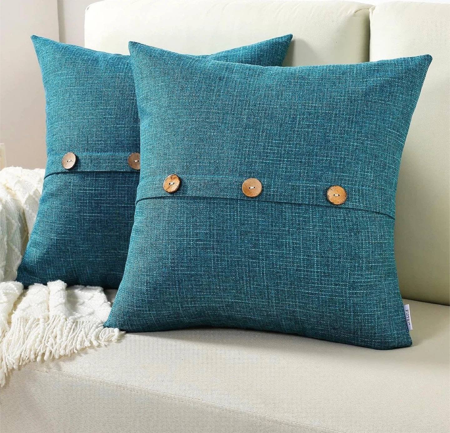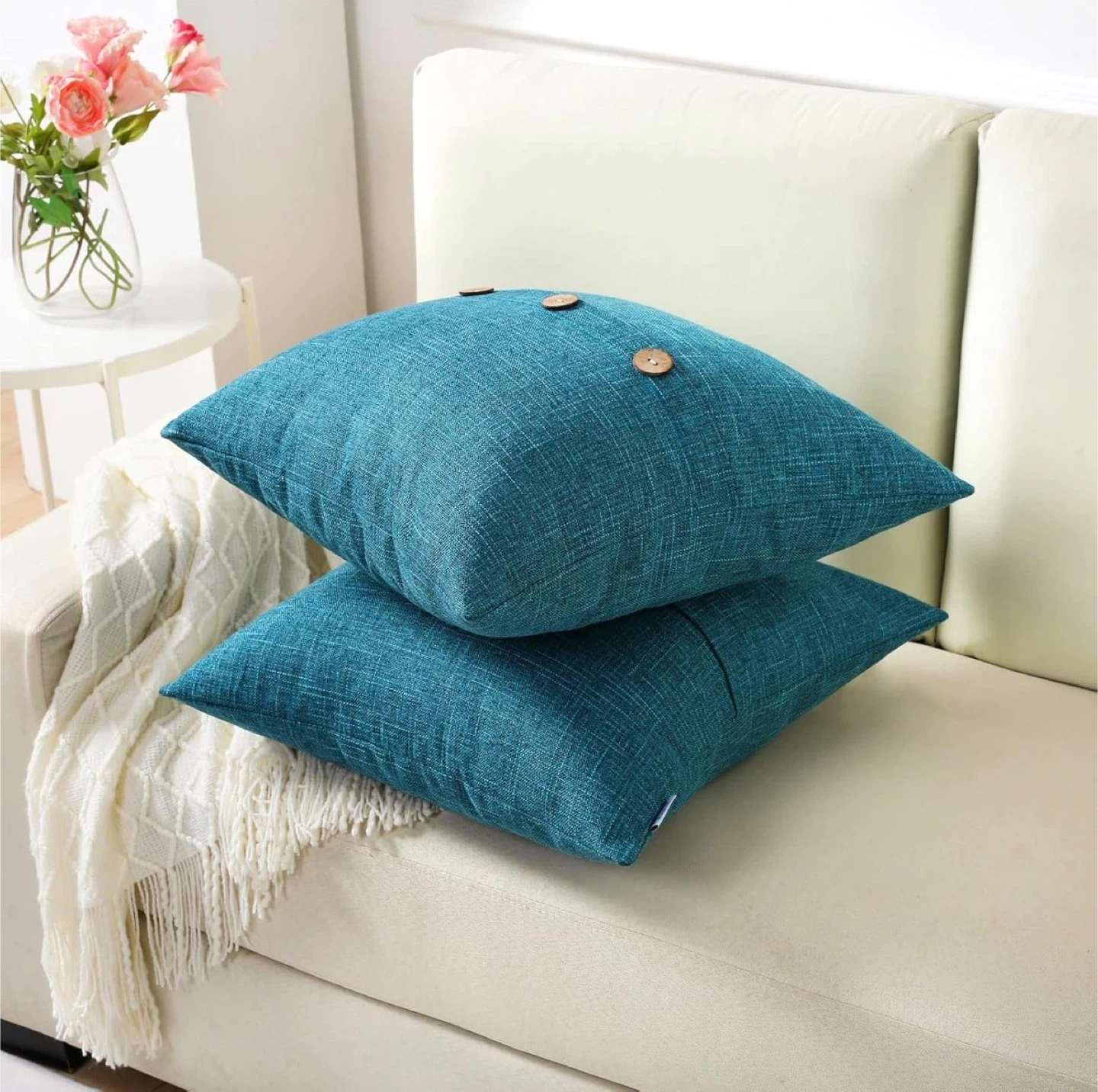 Package-2 pieces pillow covers(18x18 inch/45x45 cm),COVERS ONLY! Material-Made of premium Linen with Vivid bump texture, Hidden Zipper under 3 Vintage Buttons. Modern Decorations: Rich Solid Throw Pillow Covers, Brings Luxury Look to Your Home Decorative, Bed, Sofa, Couch, Living Room,Bedroom,Office,Chair, Car, Patio, Farmhouse, House,Dorms,Indoor & Outdoor, Etc Easy Care: Machine Washable for Easy Care and Maintenance, Separately in Cold Water on The Gentle Cycle, Do Not Use Bleach and Iron.