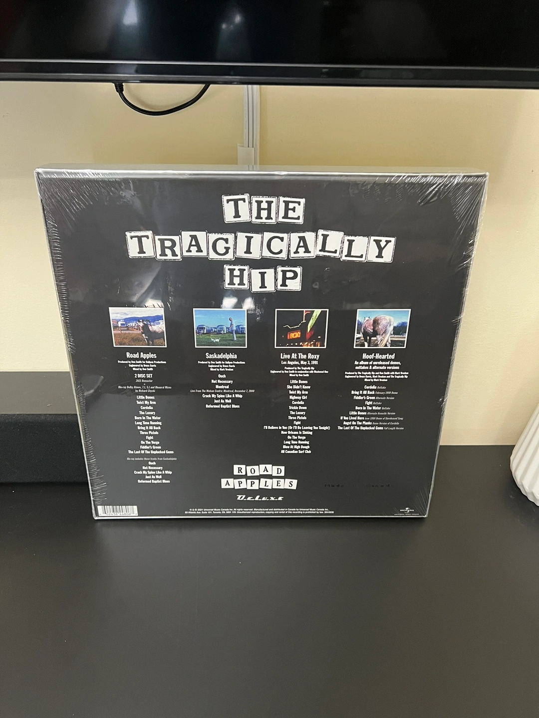 22Selling a brand new, unopened copy of The Tragically Hip’s “Road Apples” (2021 Remaster / Deluxe Edition). This deluxe set includes 4 CDs and a BluRay audio disc, still in its original packaging. • Deluxe Edition featuring the 2021 remaster of The Tragically Hip’s classic album “Road Apples.” • Includes 4 CDs and a BluRay audio disc. • High-quality remaster for an enhanced listening experience. • Collectible item for fans of The Tragically Hip. • Brand new and factory-sealed.