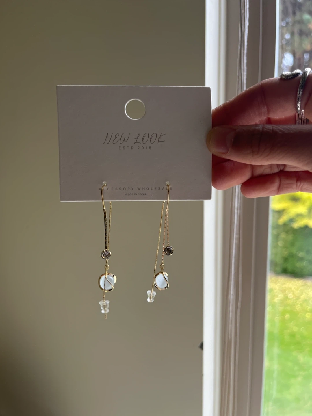 18These New Look dangle earrings are brand new and still on their original card! They feature a gold tone finish with white stone accents. Originally bought for $26.00. Open To offers. Paid 26, selling for 18.