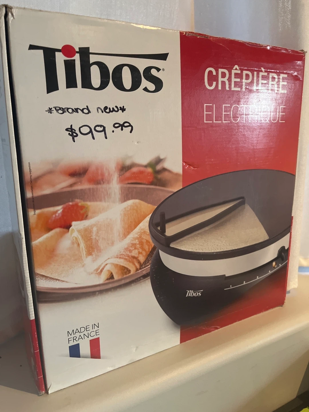 15Selling a brand new Tibos Crêpière Électrique! It comes with the original box and components. The box shows a price of $99.99. Made in France