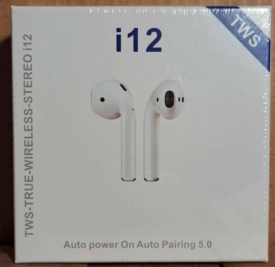 -Brand New in Sealed Box, Perfect for a gift or personal use -True Wireless Stereo i12 -Auto Power On -Auto Pairing (Bluetooth 5.0) -Open case lip and connect automatically -Touch using Siri -DC 5v / 2.4a -1x $16 or 2x $30