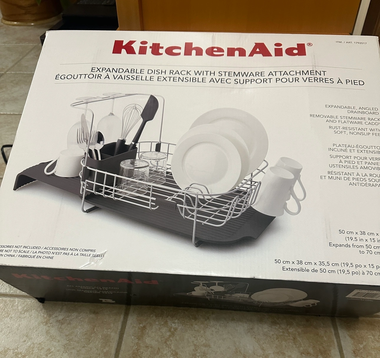 100Mississauga, Brandnew KitchenAid Satin Wire Expandable Dish Rack, 23.18-Inch - Charcoal Grey $80 This is a grey and silver KitchenAid dish rack. It has a removable stemware caddy, expandable tray and a removable utensil holder. It can be extended to fit your sink and counter size. Brandnew mini dish drainer $20 For RV & Marine