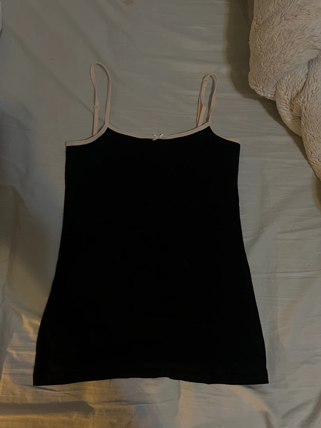 Brandy Melville black tank top with baby pink lining and bow, full length, size - one size