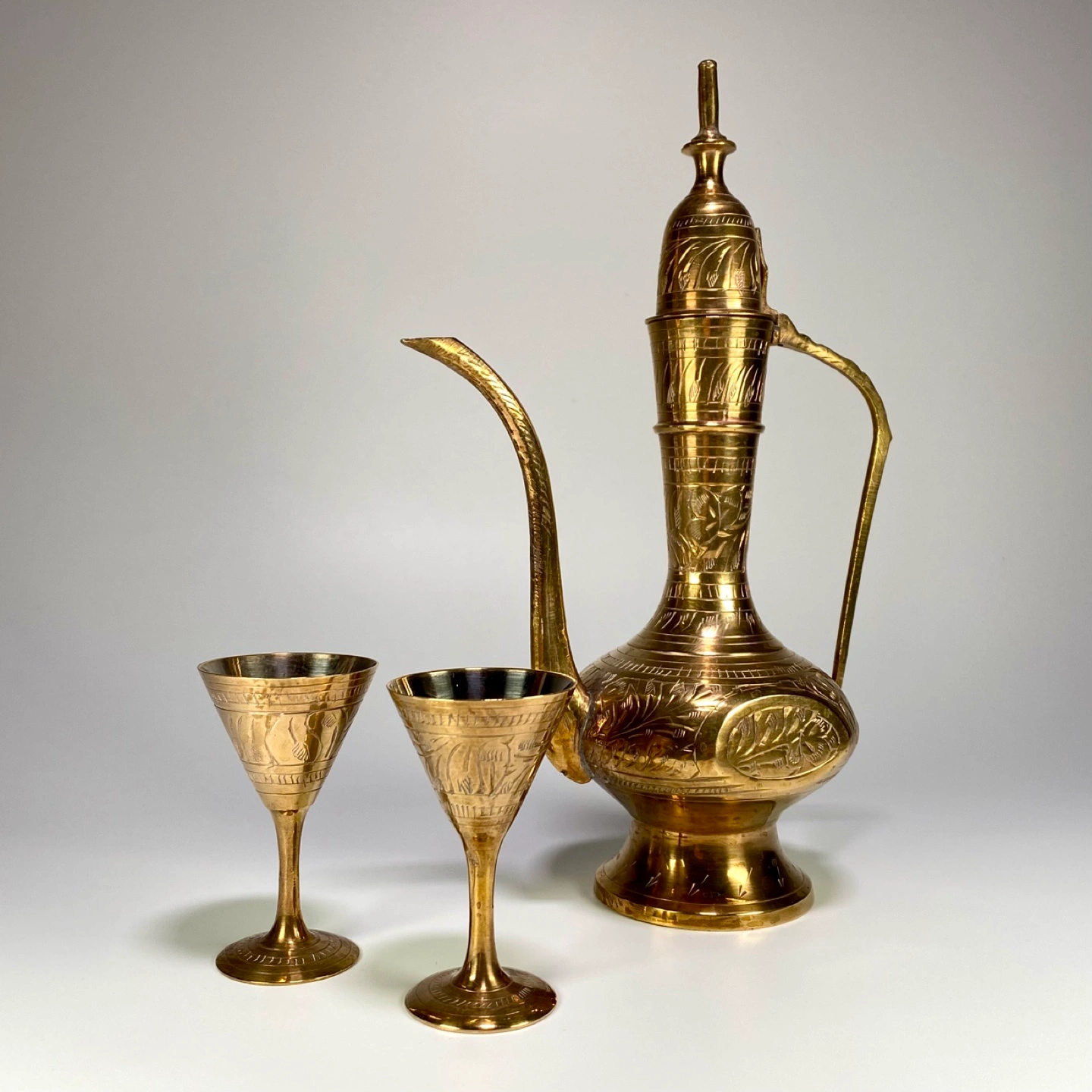 Etched brass ewer and 2 small stemmed cups. Ewer ~9.5โh ๐ฅ$25 โ Yes, it is available ๐ Pick up near Bloor & Ossington ๐ Downtown delivery extra ๐ฆ Ask about shipping
