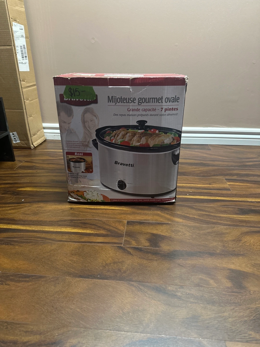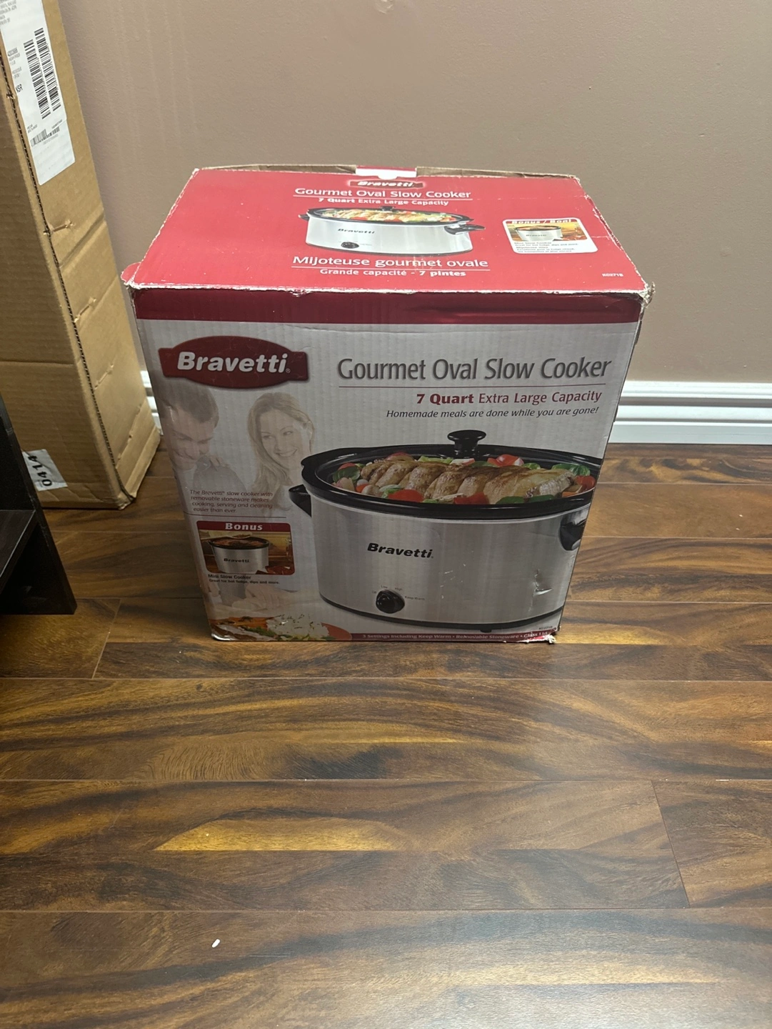 7 quart slow cooker. Great for making large meals. Comes with a bonus serving spoon.