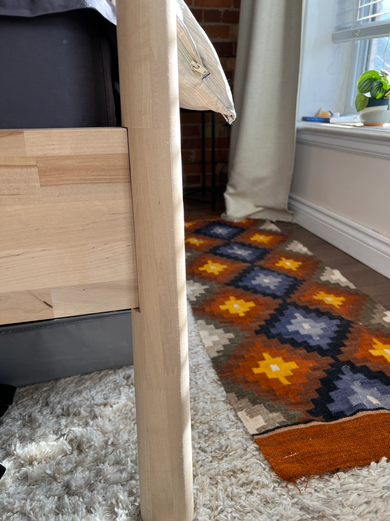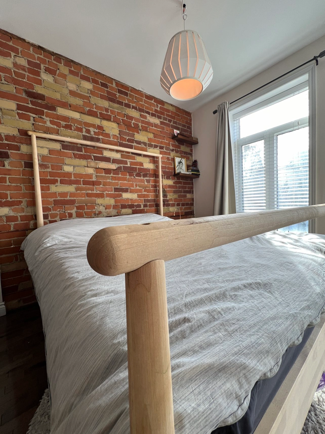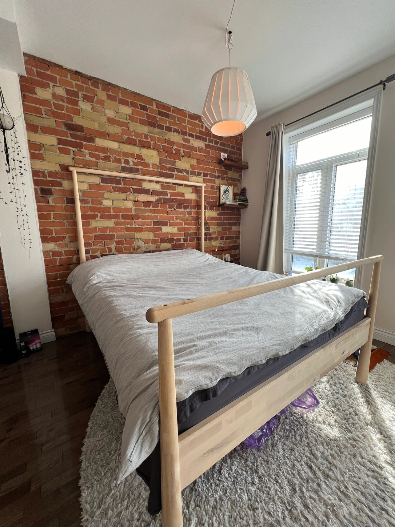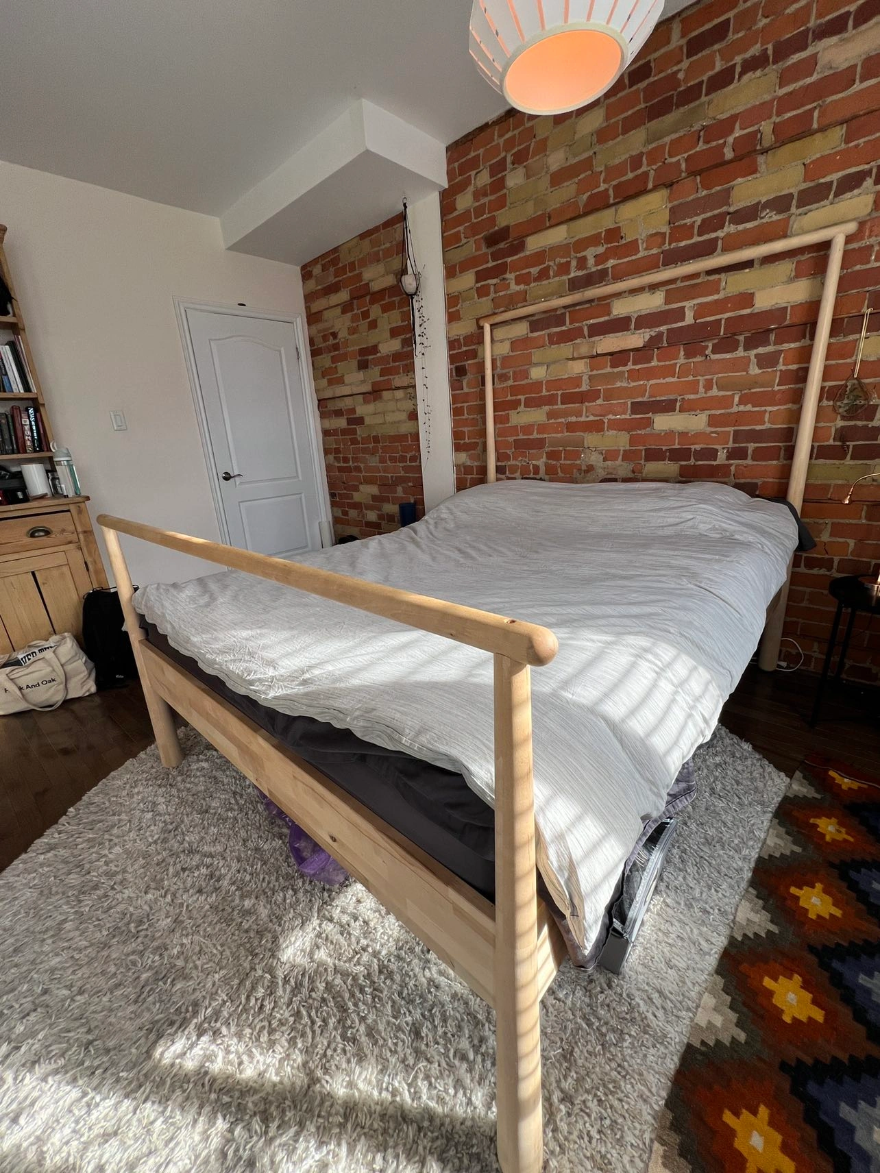 Unique IKEA bed frame. Love this frame but it’s time for a change so looking for a good home for it. Selling with the slats, but not the mattress. Orientation can be changed so the taller posts are at the foot, if you want.