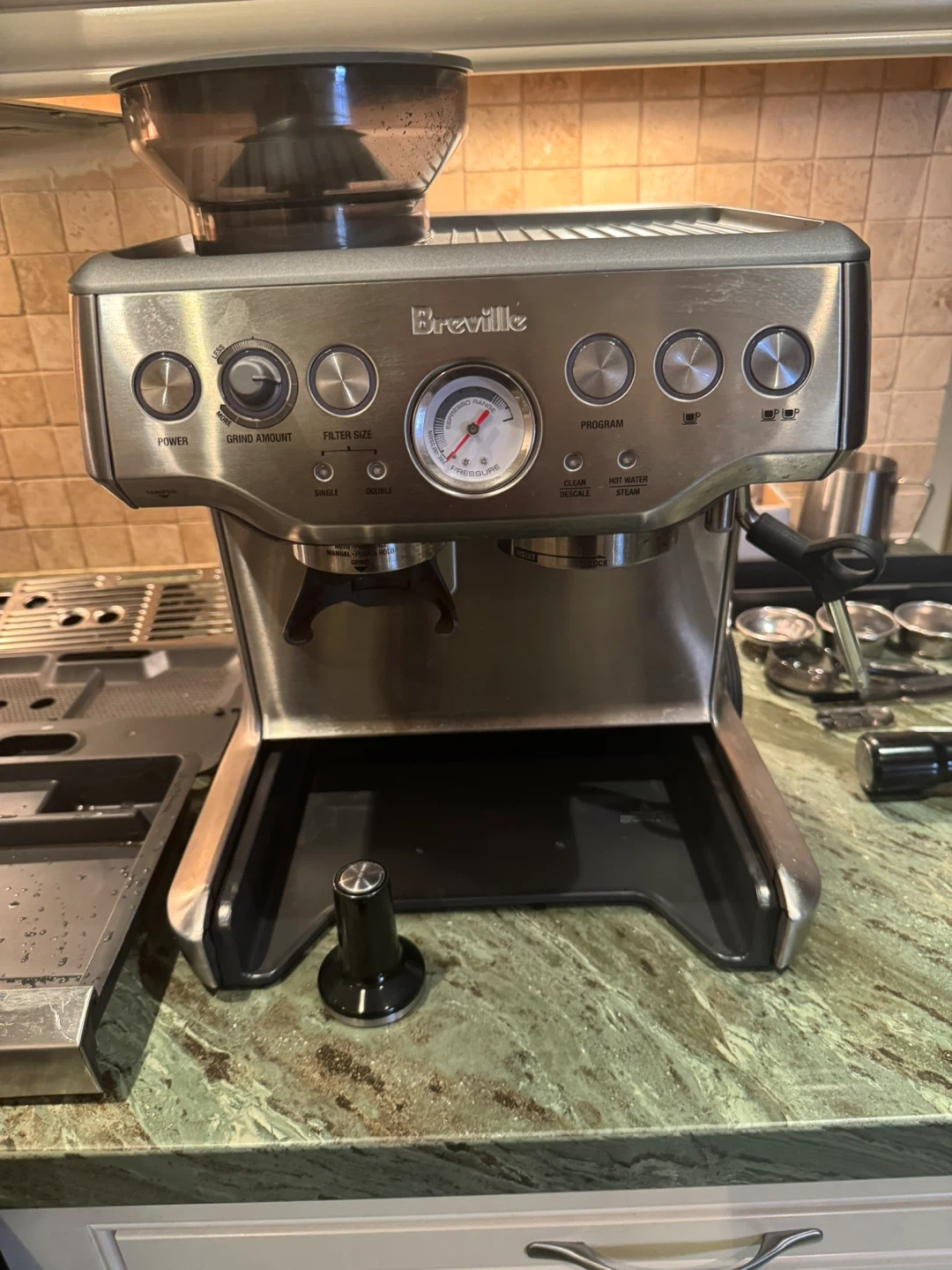 10I am selling a used Breville espresso machine, perfect for crafting barista-quality coffee at home. The machine is in great working condition and has been well-maintained. I'm only selling because I recently upgraded to a larger model. Model Barista Express Link to review features https://www.breville.com/en-ca/product/bes870 Here are some of its features: * Integrated conical burr grinder * Precise espresso extraction * Manual milk texturing * Adjustable grind size and dose If you're seeing this ad, the espresso machine is still available.