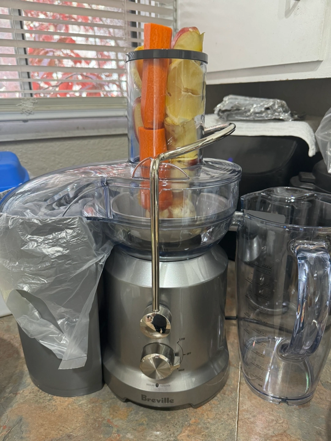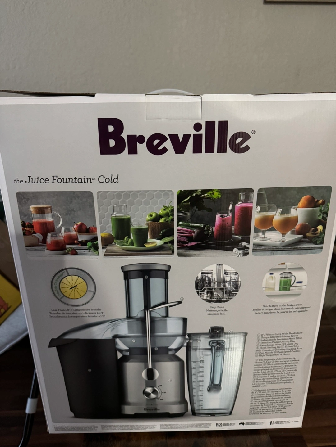 Breville Juice Fountain Cold juicer. Grey in colour. Includes box and all accessories.