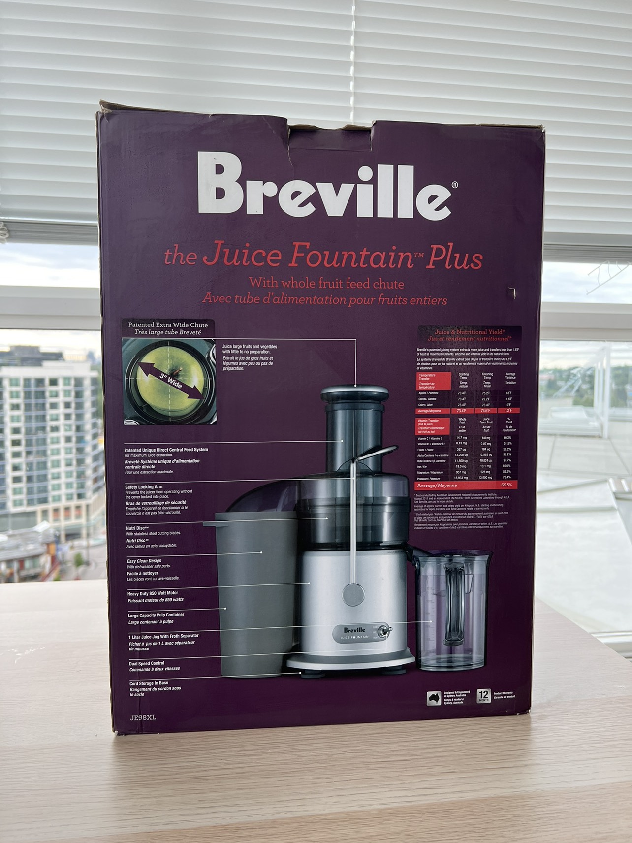 Breville the Juice Fountain Plus - Juicer in excellent condition. Easy to clean , has stainless steel cutting blades. Easy to use and store. Comes with original box. $35 or give me an offer.