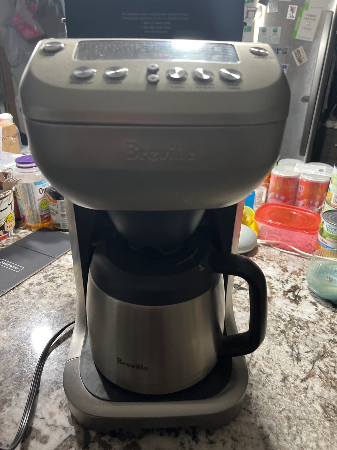 Automatic coffee maker. Features multiple brew settings. Stainless steel carafe. Good condition.