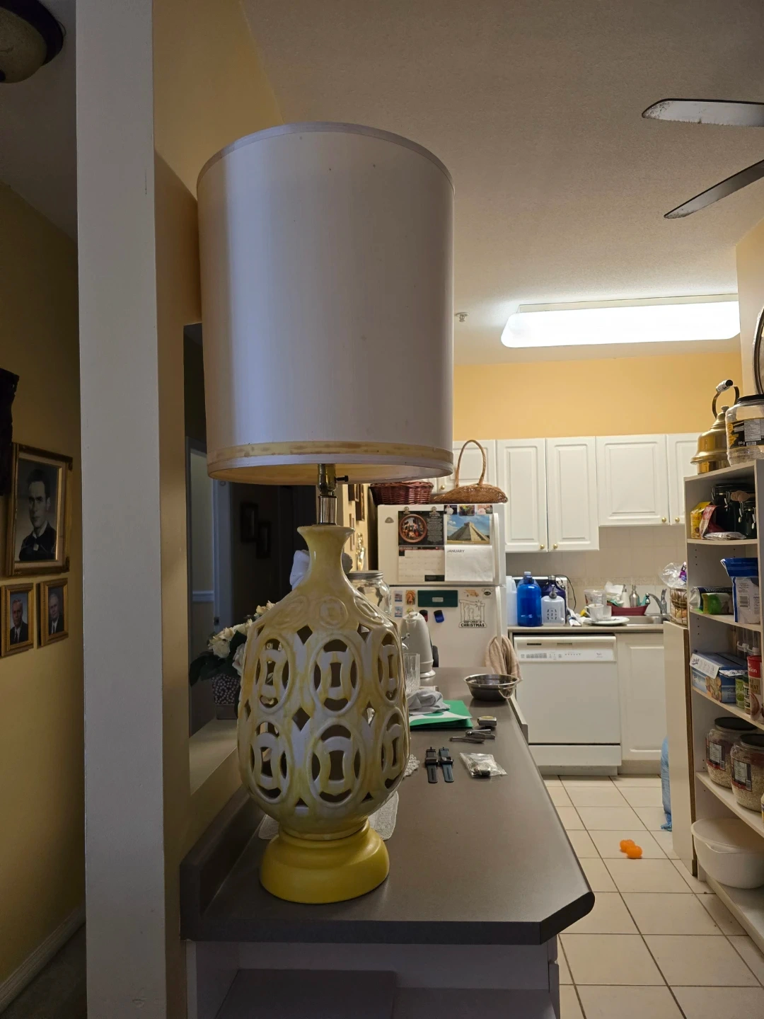 Vintage Ceramic Table Lamp - Yellow Lattice Design