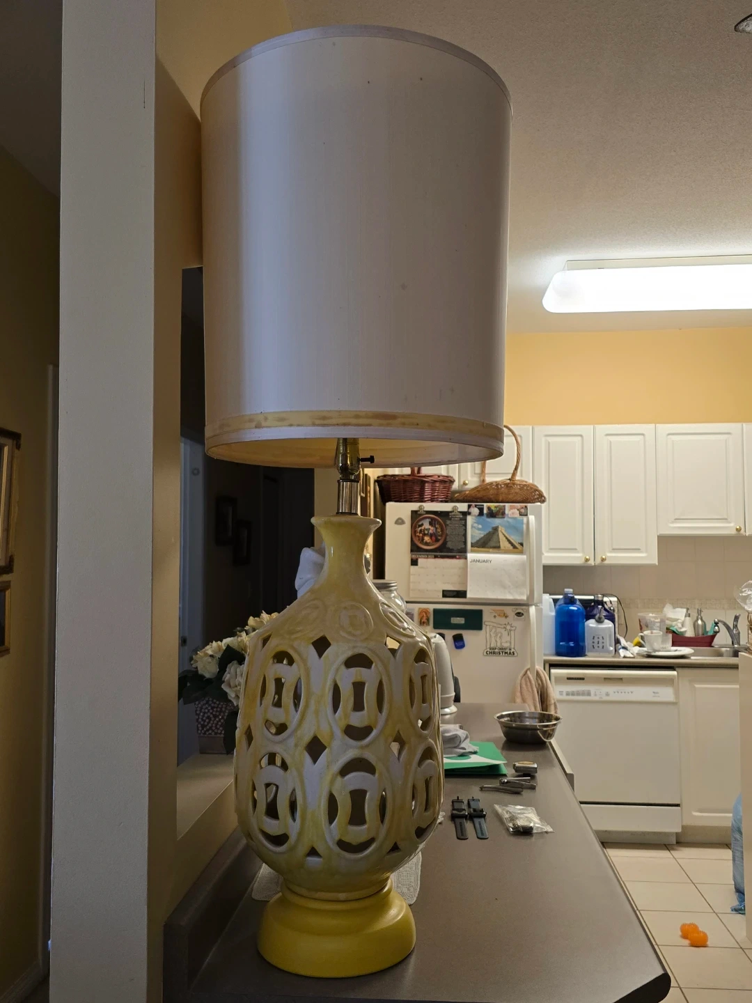 Vintage Ceramic Table Lamp - Yellow Lattice Design