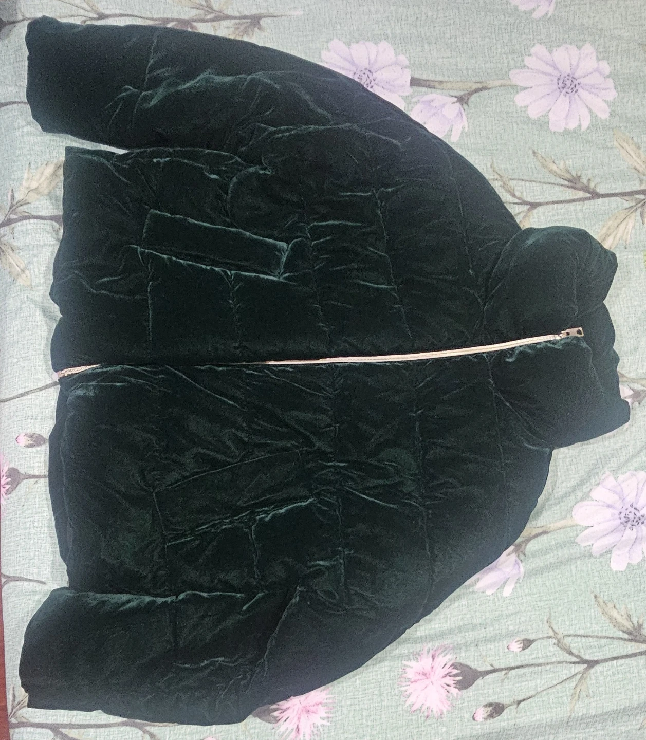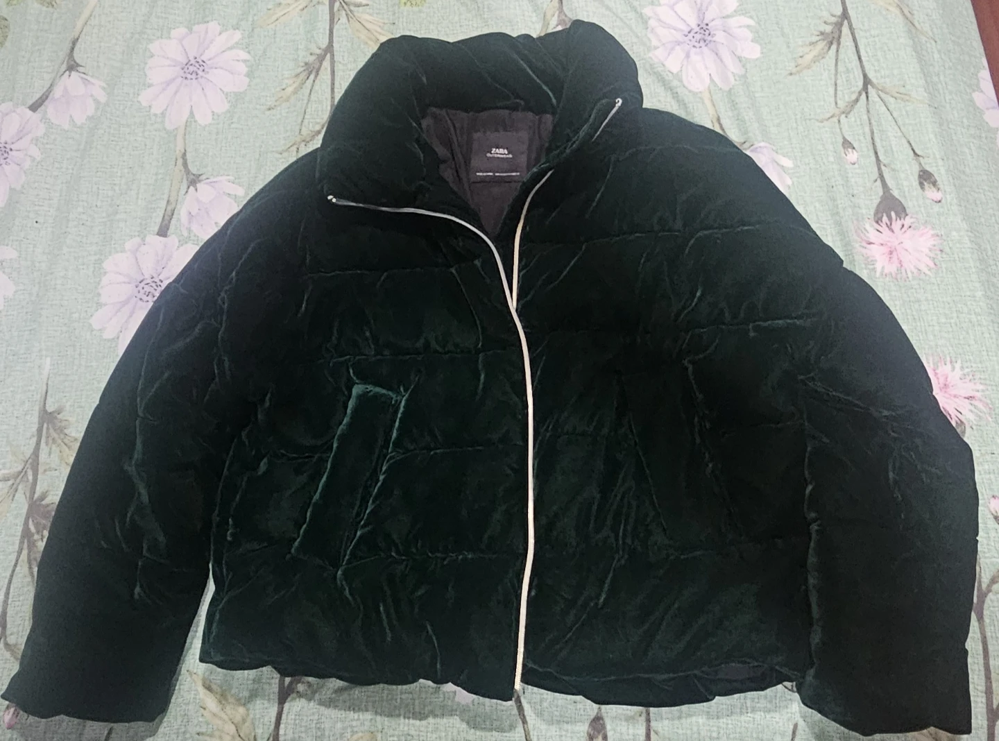 Selling a stylish Zara velvet puffer jacket in a beautiful green colour! It's perfect for staying warm and fashionable during the colder months. The jacket is in great condition and ready for a new owner