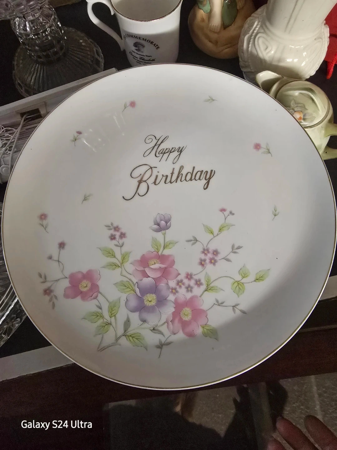 Selling a lovely decorative plate with a "Happy Birthday" message and floral design. It's in great condition and would make a nice addition to any collection or a sweet birthday gift,