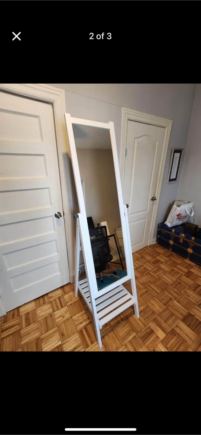 Buy & SellIKEA White Floor Mirror Pick Up Near Trinity Bellwood’s ParkIKEA White Floor Mirror Pick Up Near Trinity Bellwood’s Park$56This is a white floor mirror with a convenient shelf. Wood frame construction.ConditionLike newWHERE TO MEETCheck LocationView MapSELLERverifiedKathyTrinity Bellwoods762 reviews2 chats·5 favorites·121 viewsSEND CHAT TO SELLERHi Kathy! I’m interested in your listing.Hi Kathy! I’m interested in your listing.Get the Karrot app to chatSign In to chat