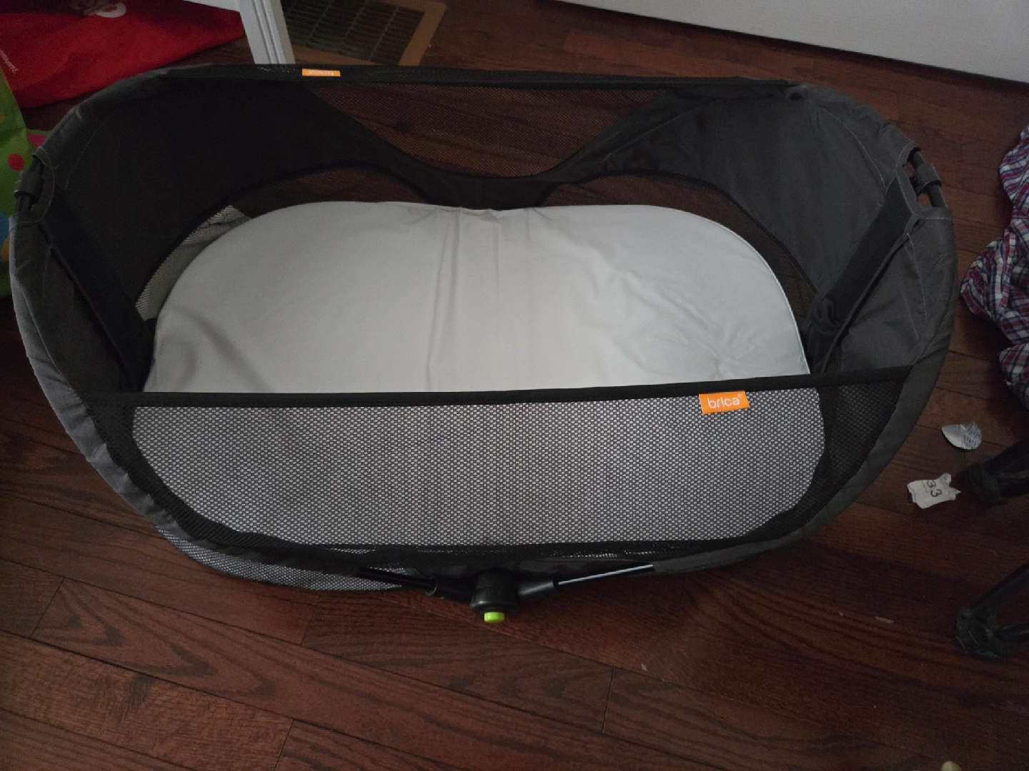 Selling a Brica Fold N' Go Travel Bassinet. It's in great condition and perfect for travel or small spaces. It folds up easily for storage and transport, making it super convenient. Comes with a comfortable mattress pad for your little one to sleep soundly