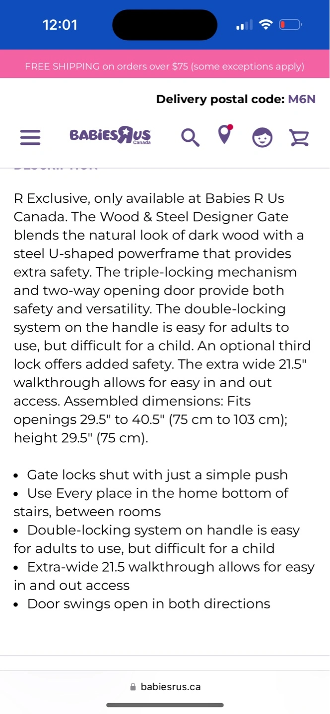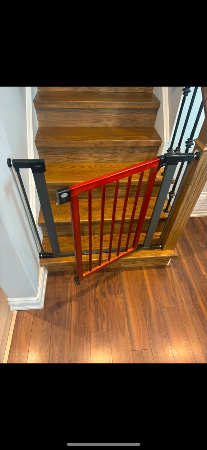 376A stylish gate. Features a black frame and red wooden bars. Perfect for keeping little ones safe while you relax around the home. Can also be used as a pet gate Smoke free pet free home Pick up can be Rathburn and the west mall area Or Symington and DuPont