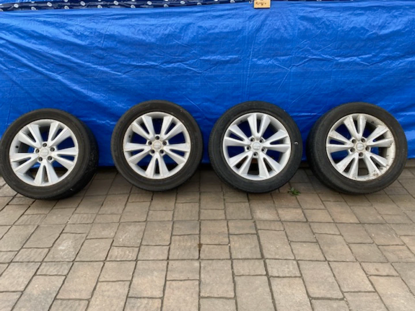 10Selling a set of four Bridgestone tires. The size is 265/50R20 M+S (great all seasons) lots of tread left and rims are in good condition. Was on my Dodge Durango but I no longer have the vehicle so it’s just taking up space for me. Sold together, will not separate. Priced to go, but will consider reasonable offers, no trades please. Ad is up, still available.