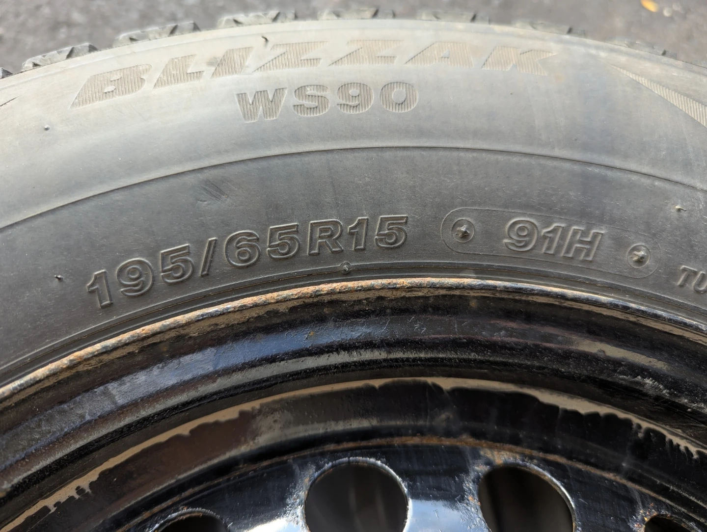 62Selling a Bridgestone Blizzak WS90 winter tire, size 195/65R15. It's a studless tire, ready to handle those snowy Canadian roads!