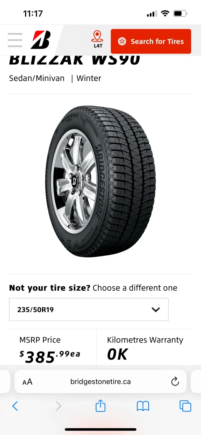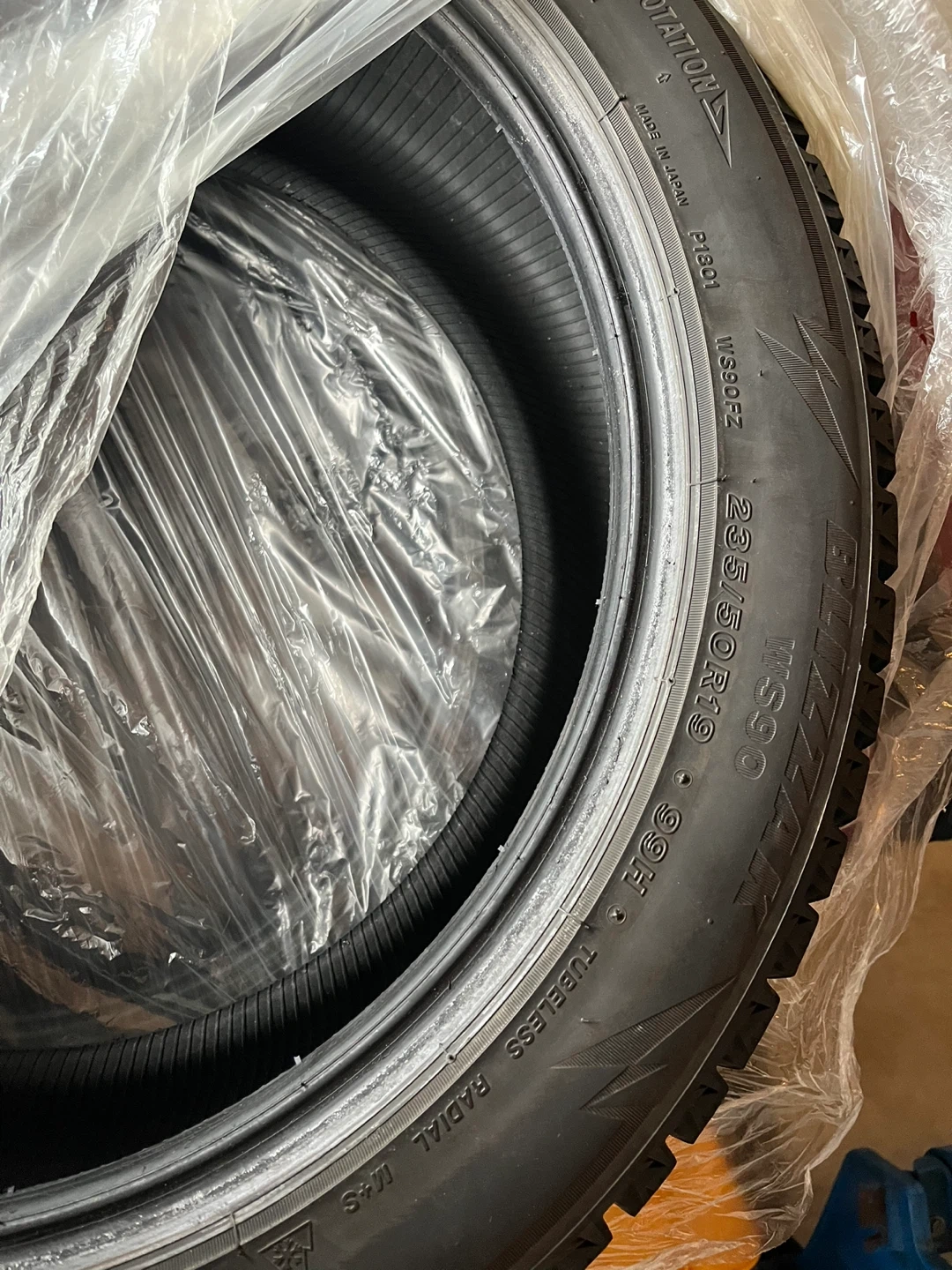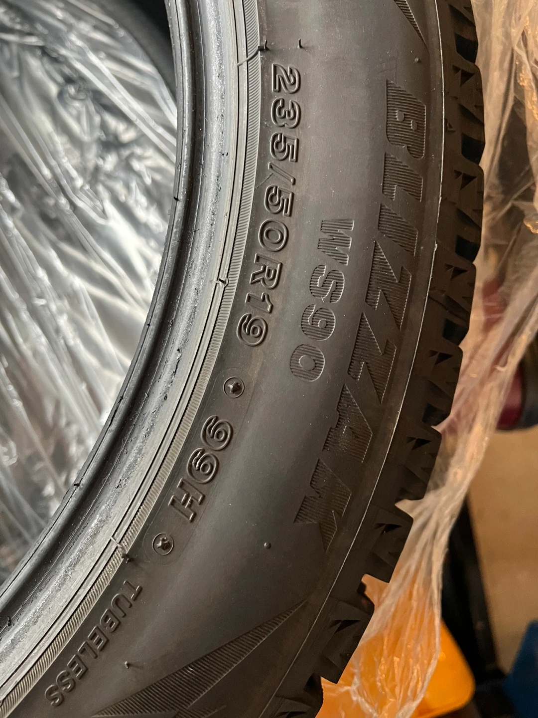73Selling a set of Bridgestone Blizzak WS90 winter tires, size 235/50R19. These are studless tires, perfect for winter driving conditions. Used in an SUV with <30000km. Selling as we switched cars and no longer fits $275 each or $1000 for the entire set.
