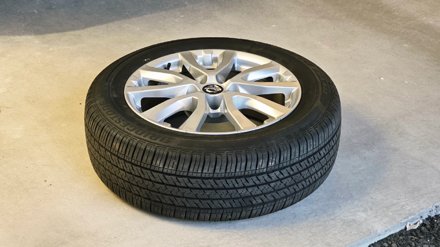 Selling a Bridgestone Ecopia tire mounted on a Nissan rim. The tire is tubeless and radial, marked M+S. Bridgestone Ecopia H/L 422 Plus 215/60R17 on Original Nissan Alloy Wheels || Made in Japan || excellent condition, driven about 28,500km. ++ Size: 215/60R17 96H ++ Type: All Season M+S (Mud & Snow rated). ++ DOT: 4121 (week 41 of 2021) ++ Max load: 710kg @ 300 kpa ++ Tubeless || Radial || Made in Japan ++ used during summers from 2022 to 2024 ++ even tread wear, smooth ride ++ Original Nissan Alloy wheels in great shape ++ Always stored indoors during winters ++ Premium Bridgestone Ecopia - Quiet, fuel efficient, long lasting tread ++ Genuine Nissan OEM alloys ++ ready to mount Reason for selling : Switched to a new vehicle with a different wheel size.