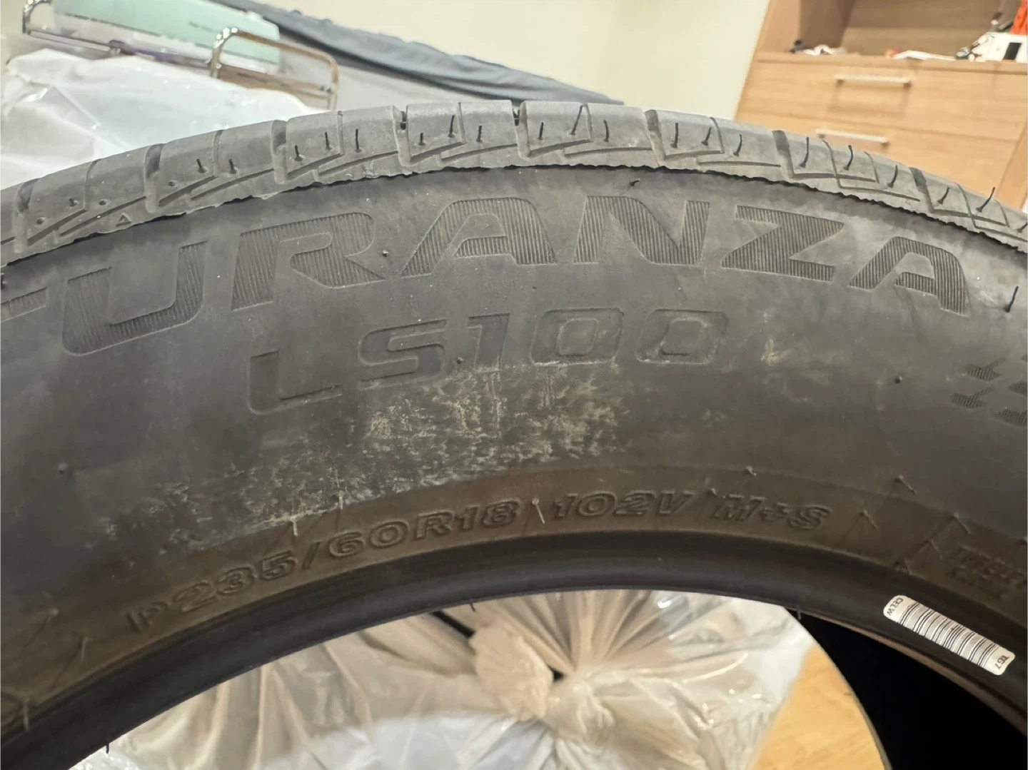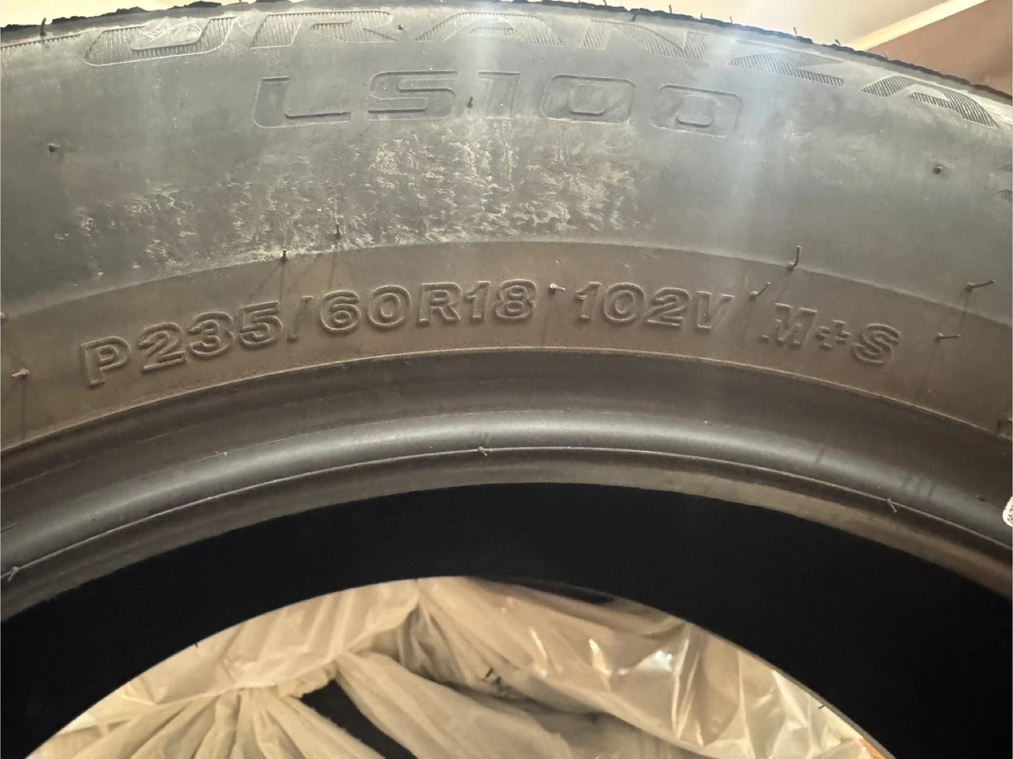 60Selling a Bridgestone Turanza LS100 tire. The size is P235/60R18 102V M+S. It's in good condition and ready for a new vehicle!