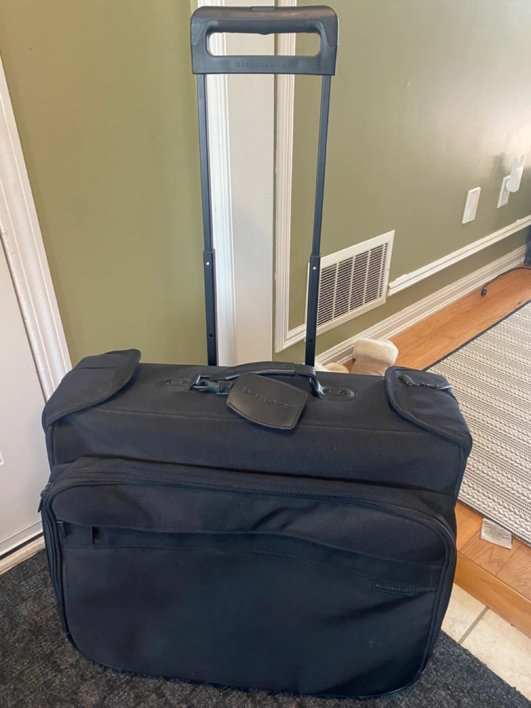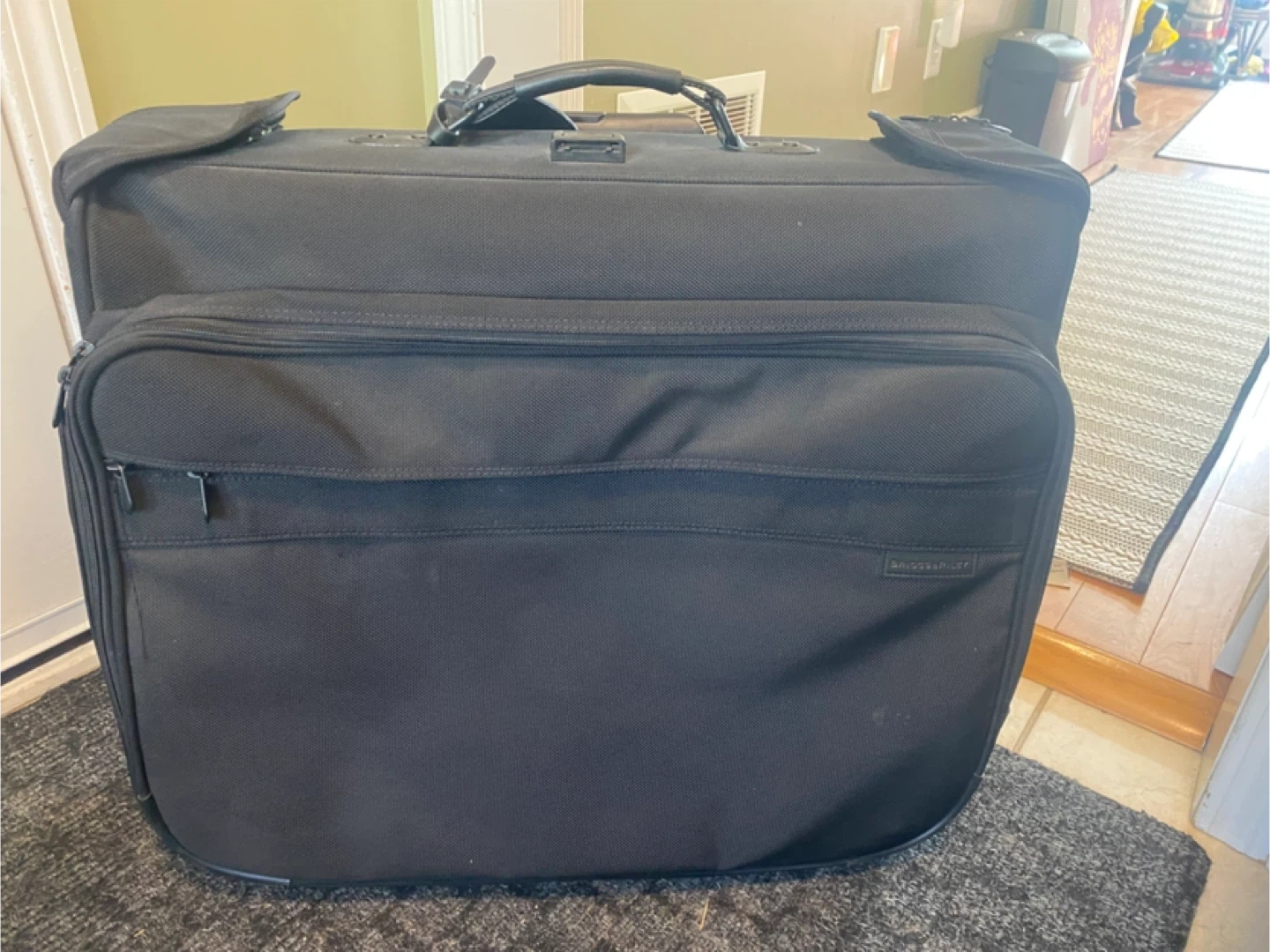Selling a Briggs & Riley rolling garment bag in black. It's in great shape and ready to help you travel with your suits and dresses wrinkle-free! Great for business trips or special events