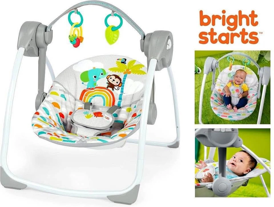 BRIGHT STARTS PLAYFUL PARADISE PORTABLE COMPACT AUTOMATIC BABY SWING WITH MUSIC - MULTICOLOR ITEM CONDITION: Open - new or appears new PACKAGE CONDITION: Retail packaging (distressed) See any photos attached of the item contents and packaging condition. Pick up: Creditview and Rathburn